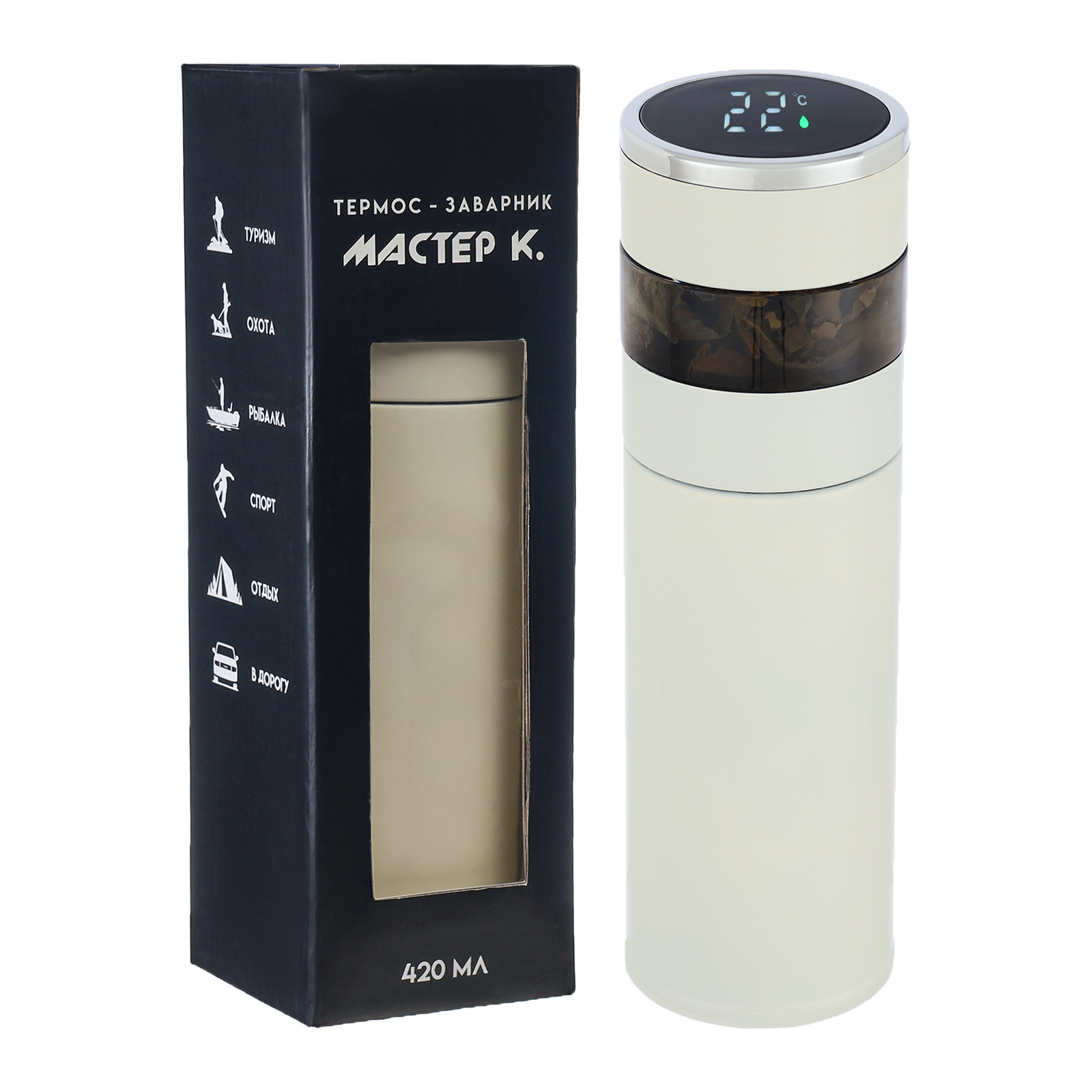 Термос-заварник, 420 мл, с термометром, сохраняет тепло до 12 ч, белый