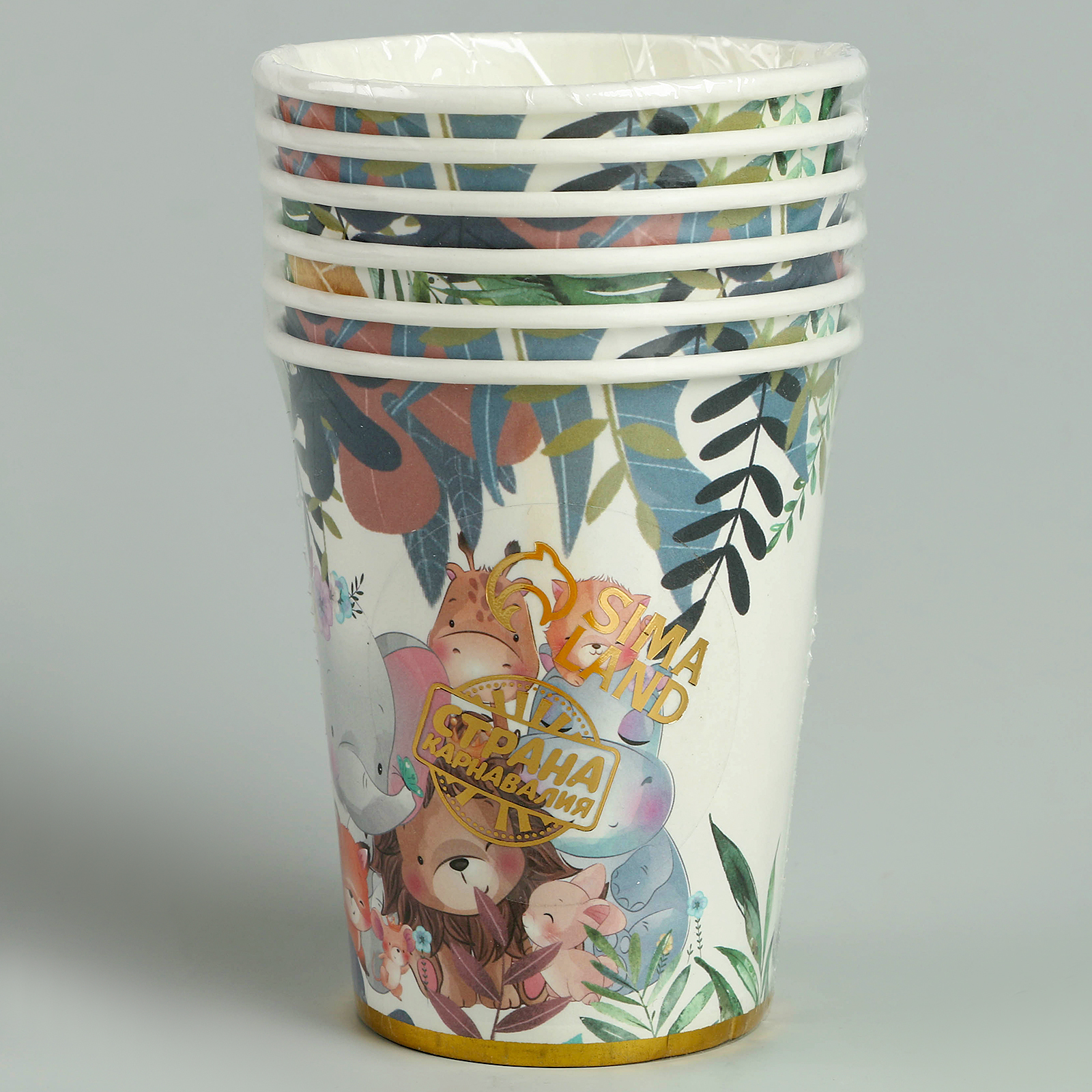 Стаканы бумажные «зверята» с тиснением, 6 шт