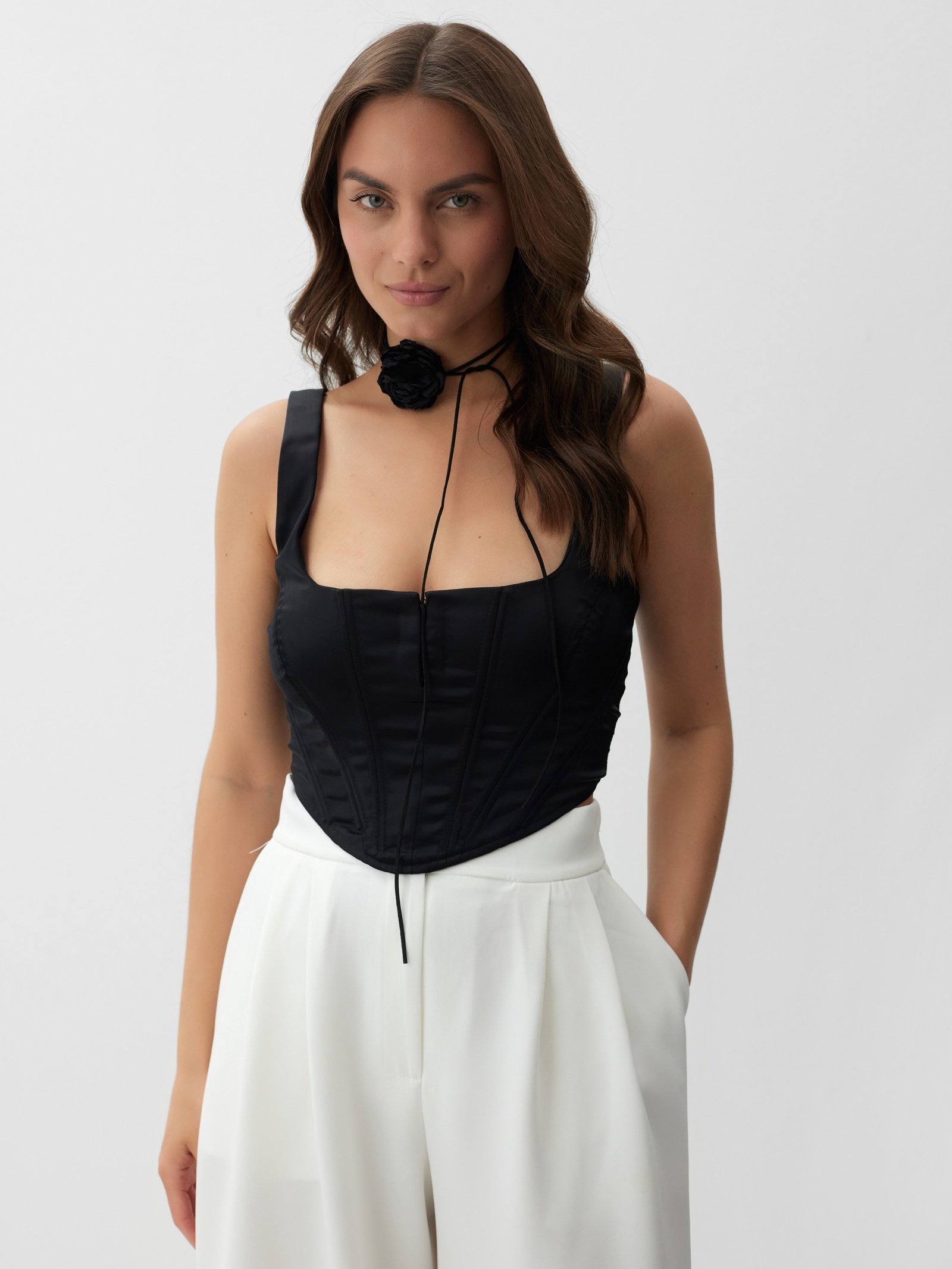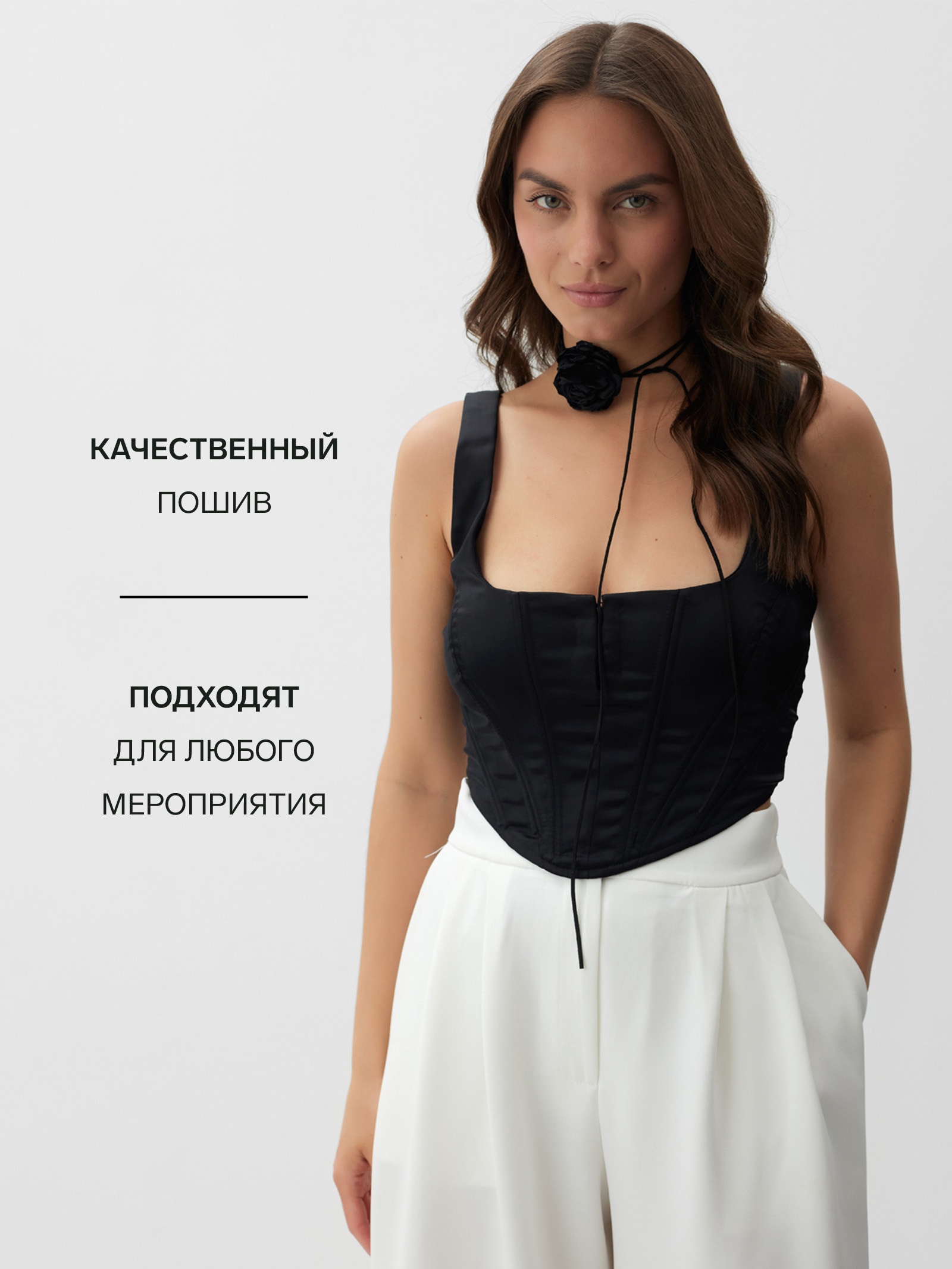 Корсет женский атласный mist, размер m, чёрный. Цвет:Чёрный|Для кого:Для женщины|Назначение:Вечерняя мода|Назначение:Повседневная|Ткань:Атлас|Размер:46|Рост, см:165 - 175|Рост модели на фото, см:167|Сезон:Лето|Сезон:Всесезонный|Вид застёжки:Молния|Тематика:Однотонная|Вырез горловины:Каре|Декоративные элементы:Без элементов|Покрой:Облегающий|Рекомендации по уходу:Глажка при 100 °С|Рекомендации по уходу:Деликатная стирка при 30 °С|Рекомендации по уходу:Барабанная сушка запрещена|Рекомендации по уходу:Не отбеливать|Состав ткани:Полиэстер|Длина изделия по спинке, см:17|Вид бретелей:Широкие|Параметры модели на фото (ОГ-ОТ-ОБ):86-65-92|Размер одежды:42|Страна:Китай  развернуть описание ▼