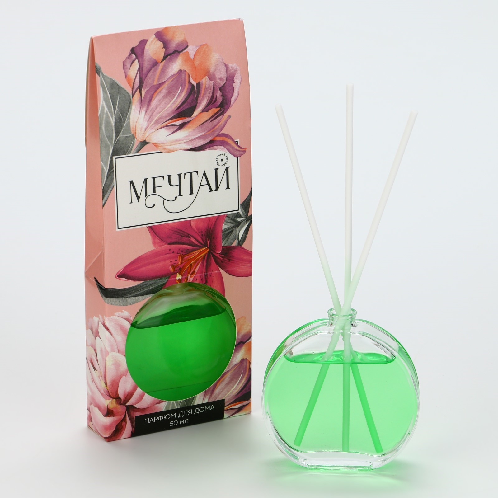 Диффузор ароматический «мечтай», аромат свежесть леса, 50 мл.. Ароматический диффузор «Мечтай» от бренда SEE YOU HOME – это стильное решение для создания уютной атмосферы в вашем доме. Диффузор имеет аромат леса, который окутает ваш дом свежим и приятным запахом. Диффузор выполнен в виде стеклянной бутылочки круглой формы, украшенной изображением цветов. В комплект входят палочки из натурального материала, которые впитывают аромат и распространяют его по комнате. Аромат «Мечтай» – это идеальный выбор для тех, кто ценит красоту и комфорт. Он создает атмосферу легкости и романтики, делая ваш дом по-настоящему уютным, это не только приятный аромат, но и стильный аксессуар для вашего интерьера. Аромадиффузор станет прекрасным подарком для любителей ароматерапии и просто для тех, кто ценит красоту и уют. ПрименениеИзвлеките диффузор из упаковки, откройте крышку и защитный колпачок, опустите палочки в ароматизированную жидкость и наслаждайтесь. Ароматизированная жидкость пропитывает палочки, и с их помощью аромат распространяется по всему помещению. Объём, мл: 50 Вид ароматизатора: В бутылочке Аромат: Свежесть леса  развернуть описание ▼