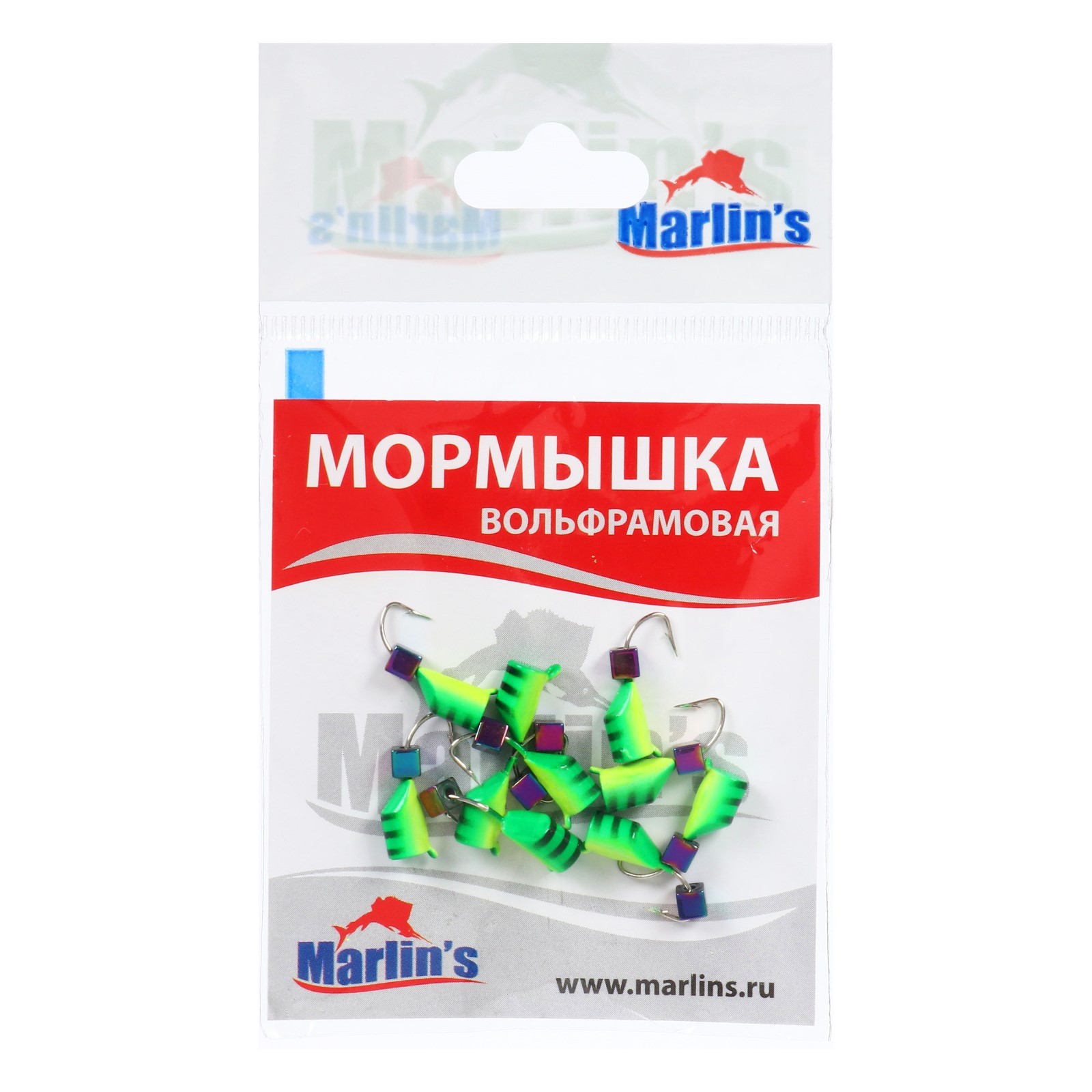 Мормышка вольфрам Marlins гвоздекубик, 4 мм, 1.5 г, зеленый, желтый + бензин, 10 шт.