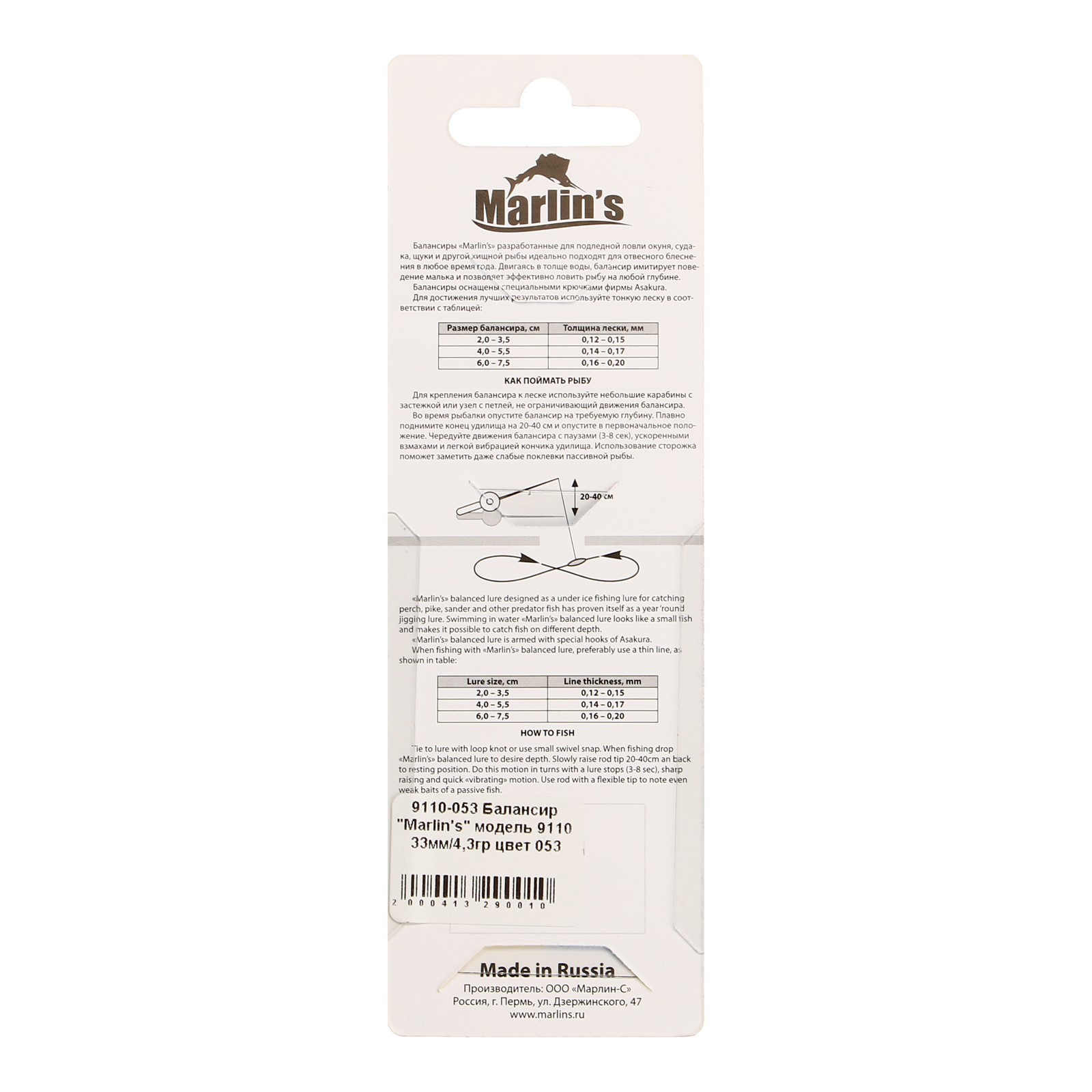 Балансир marlins 9110, 3.3 см, 4.3 г, цвет 053. Балансиры «Marlin’s» - превосходно подходят для ловли любого речного хищника. Они обладают виртуозной игрой и идеальной сбалансированностью. Оптимальный ассортимент форм и широкая гамма расцветок позволит удовлетворить любые потребности рыболовов. Цвет: Жёлтый Длина, мм: 33 Вес, г: 4.3 Температурное ограничение: Нет  развернуть описание ▼