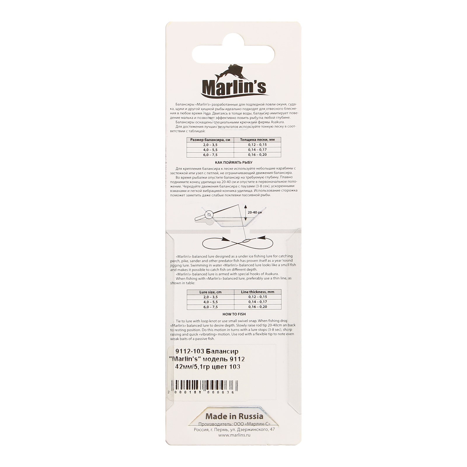 Балансир Marlins 9112, 4.2 см, 5.1 г, цвет 103