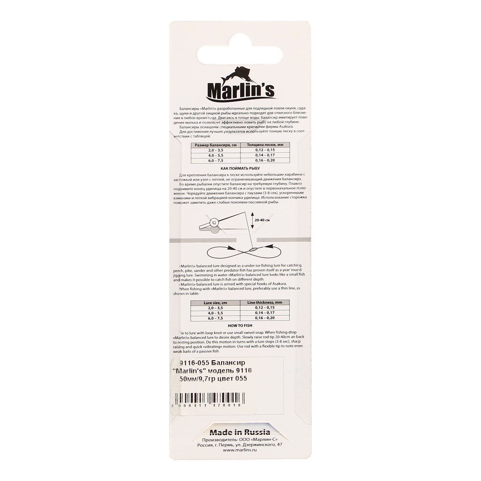 Балансир Marlins 9116, 5 см, 9.7 г, цвет 055