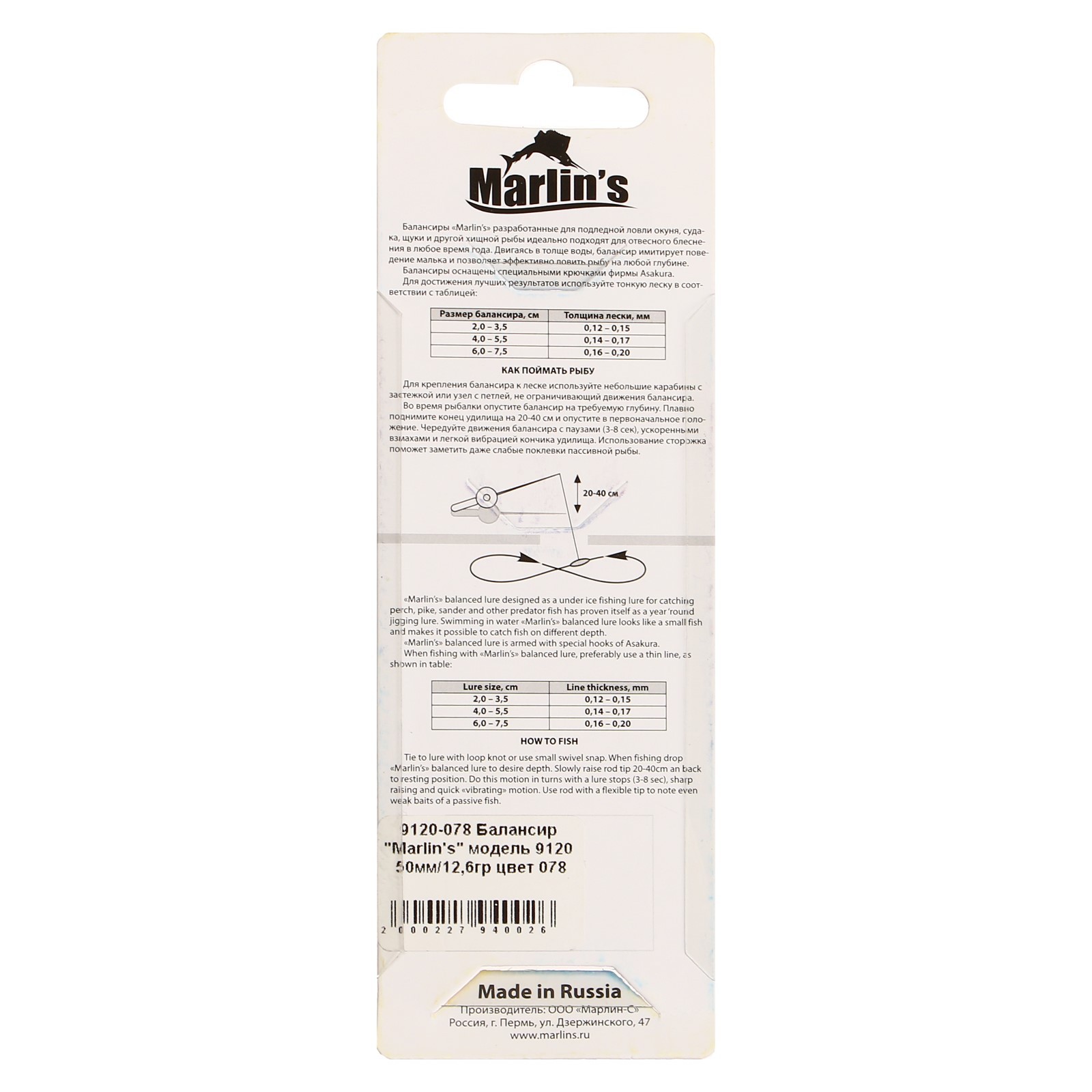 Балансир Marlins 9120, 5 см, 12.6 г, цвет 078