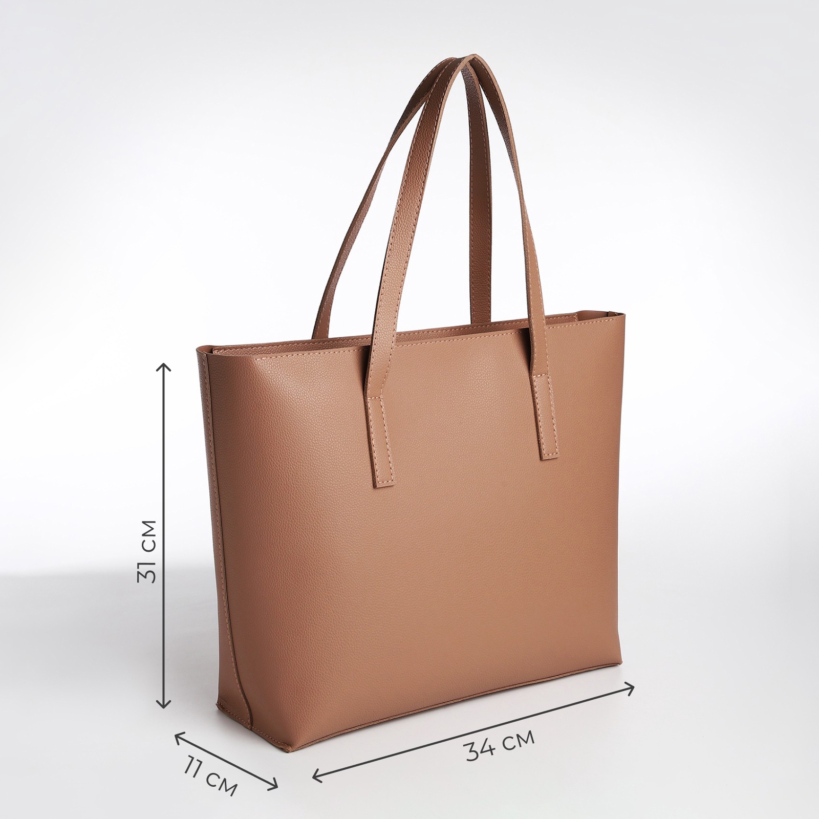 Сумка-шопер женская textura на молнии, размер 34 11 31 см, однотонная, бежевая. Откройте для себя элегантное сочетание стиля и функциональности с женской сумкой-шопером TEXTURA. Эта сумка создана для тех, кто ценит утонченный вкус и удобство в повседневной жизни. Большой размер и изысканный бежевый цвет делают её идеальным спутником как для будничных дел, так и для прогулок в городе. Сумка изготовлена из высококачественной экокожи, что гарантирует долговечность и лёгкость в уходе. Мягкий, но прочный материал обеспечивает сохранность ваших вещей и придаёт изделию роскошный внешний вид. Просторный внутренний отдел: вместимость позволяет носить с собой всё необходимое — от ноутбука до покупок, сохраняя при этом изящество и стиль.Удобные ручки: рассчитаны на комфортное ношение сумки как в руке, так и на плече, без лишнего давления и усталости.Универсальный дизайн: благодаря нейтральному бежевому цвету, сумка легко сочетается с любым гардеробом, подчёркивая ваш индивидуальный стиль.Экологичность: экокожа — это не только красиво, но и осознанный выбор в пользу окружающей среды.Лёгкость и прочность: сумка создана для активного использования, не теряя при этом своего внешнего вида и формы даже при регулярном ношении.Сумка-шопер TEXTURA станет незаменимым аксессуаром для любой современной женщины. Это идеальный баланс между практичностью и модой, позволяющий чувствовать себя уверенно в любой ситуации. Оцените качество и комфорт, которые предлагает этот уникальный продукт. Цвет:Бежевый|Для кого:Для женщины|Длина, см:34|Ширина, см:11|Высота, см:31|Количество внешних карманов, шт:1|Сезон:Всесезонный|Вид застёжки:Молния|Возраст:Взрослый|Материал:Искусственная кожа|Регулируемый ремешок:Нет|Цвет фурнитуры:Серебряный|Модель сумки:Шопер|Модель сумки:Тоут|Размер:Средний|Каркас:Полукаркас|Стиль:Повседневный|Стиль:Классический|Длинный ремешок:Нет|Способ ношения:На плечо|Страна:Россия  развернуть описание ▼