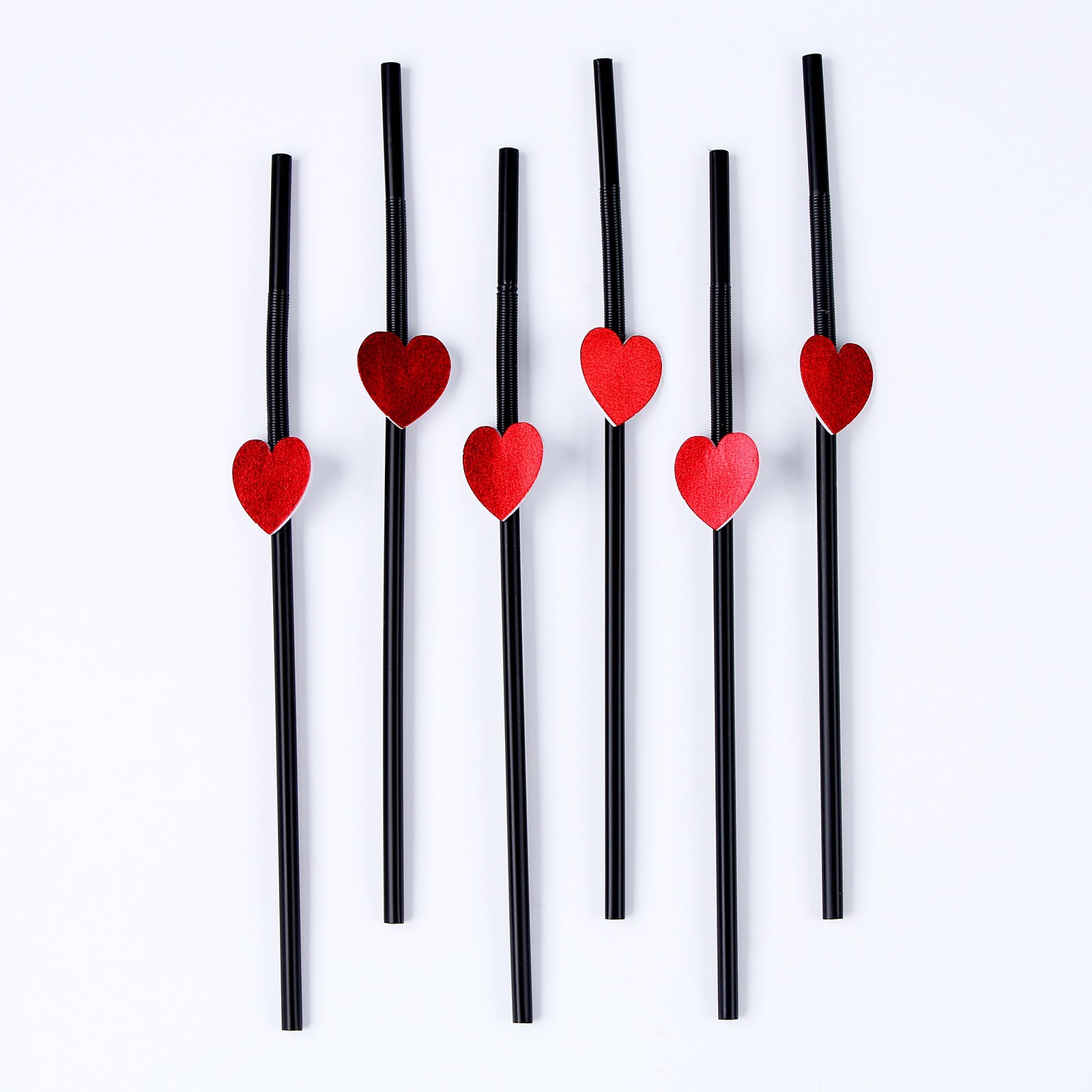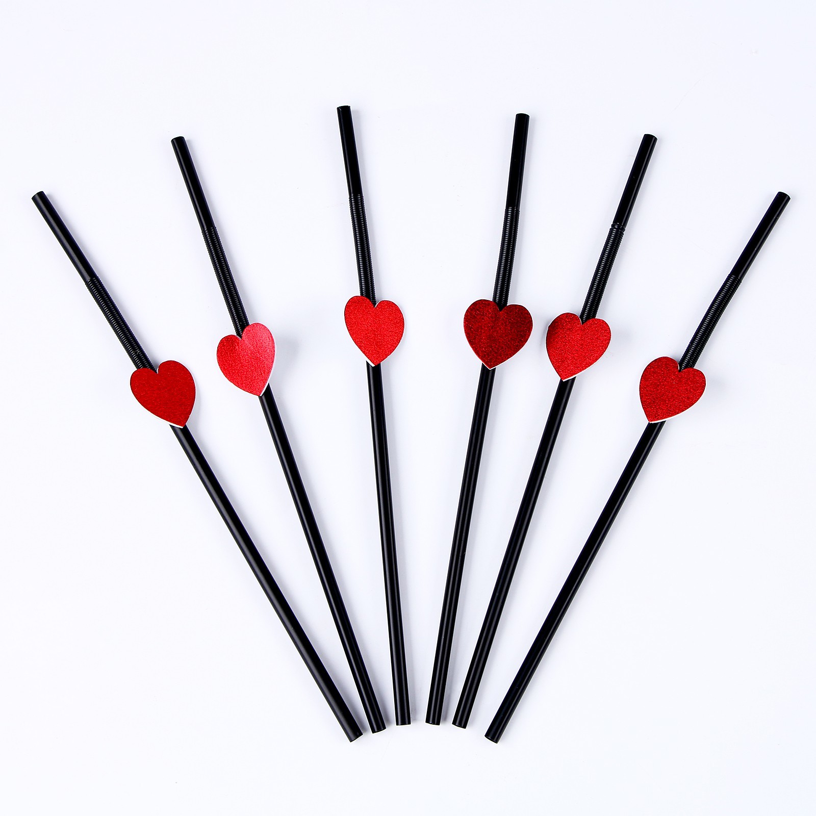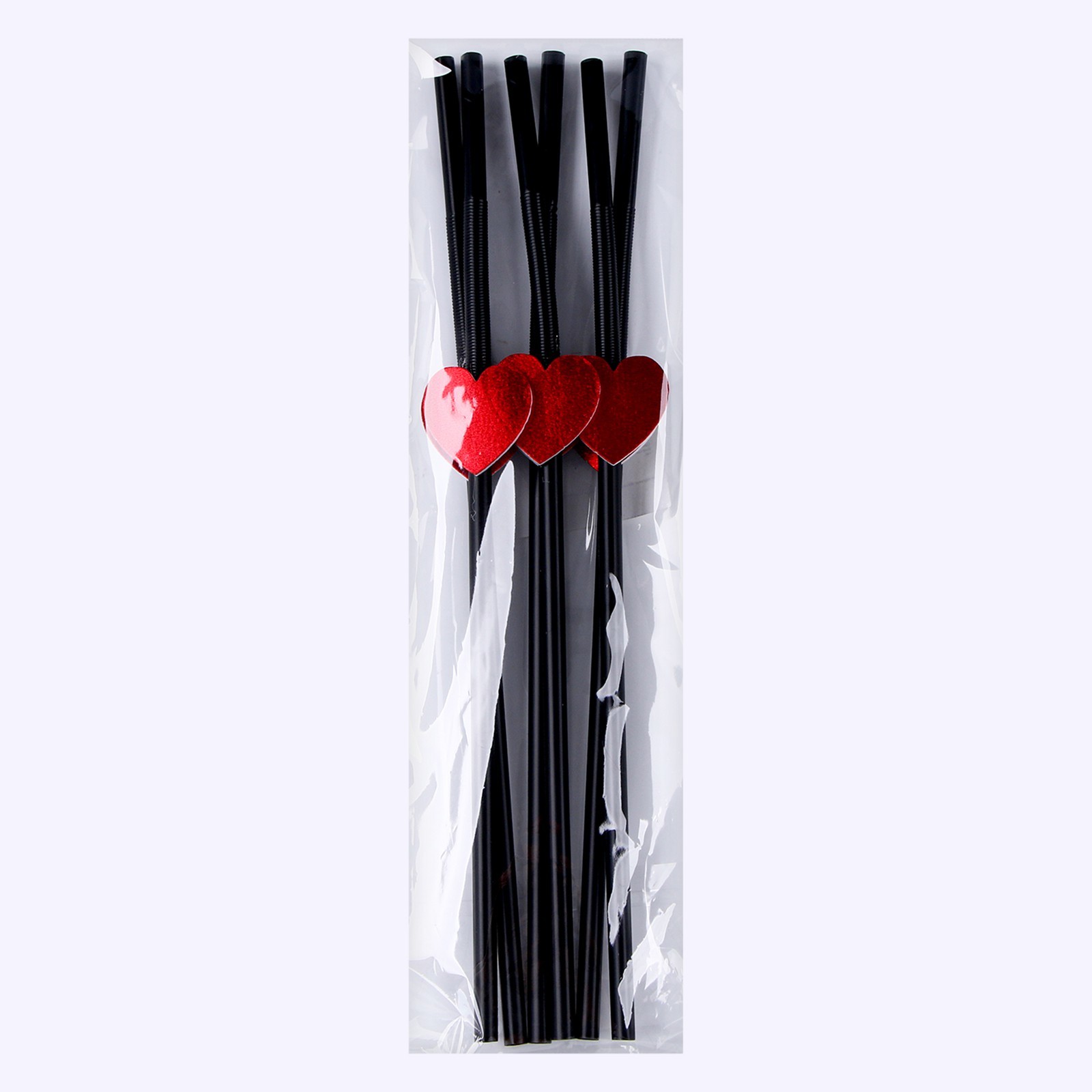 Трубочки для коктейля, с сердцами, в наборе 6 шт., чёрные