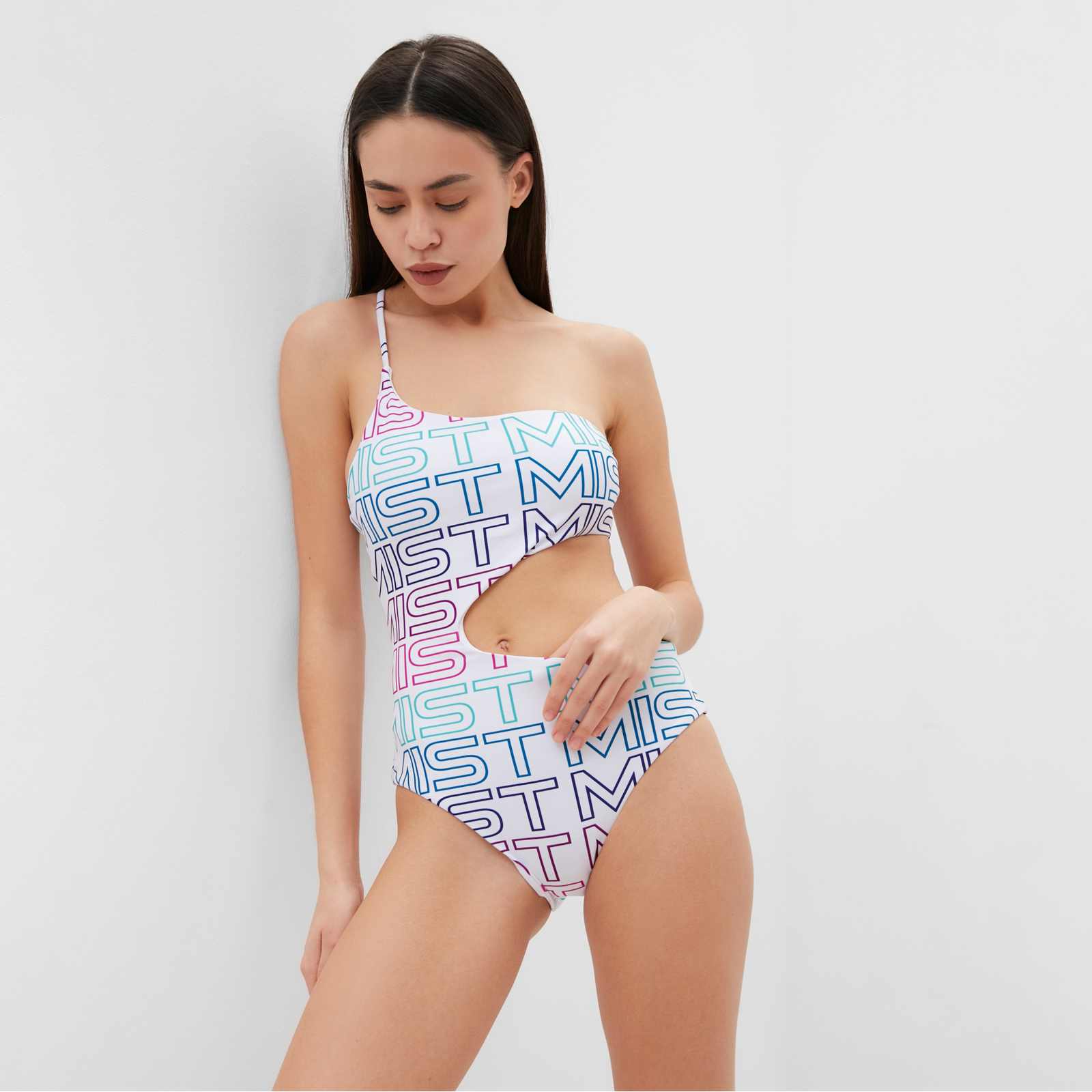 Купальник женский слитный на одно плечо mist, размер m. Вид:Купальник|Цвет:Белый|Для кого:Для женщины|Назначение:Пляж|Размер:46|Сезон:Лето|Тематика:Надписи, цифры, буквы|Тип купальника:Слитный|Размер чашки:B|Размер чашки:A|Состав ткани:Нейлон|Состав ткани:Эластан|Особенность верха:На одно плечо|Особенность низа:Слипы|Страна:Китай  развернуть описание ▼