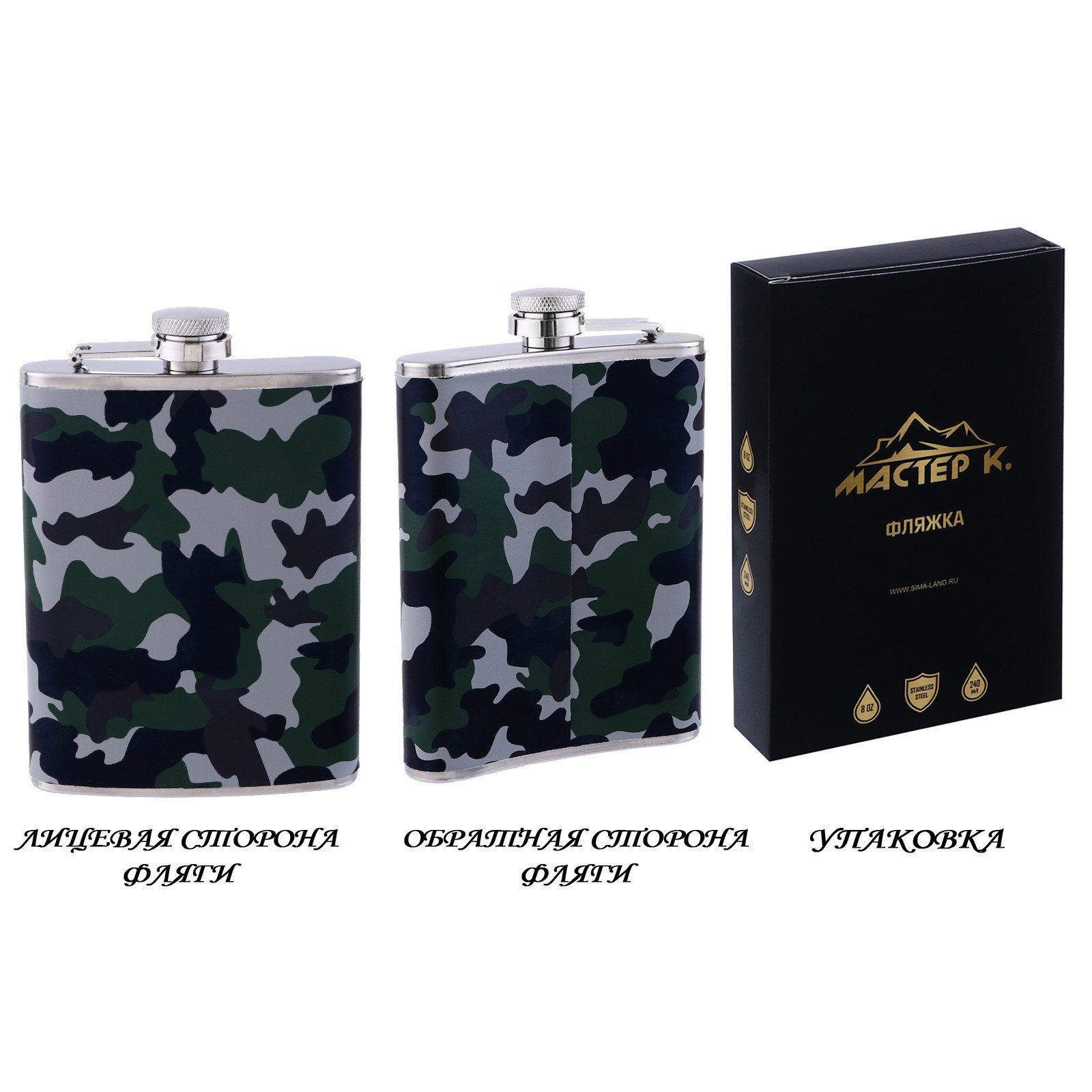 Фляжка для алкоголя "хаки", нержавеющая сталь, подарочная, армейская, 240 мл, 8 Oz