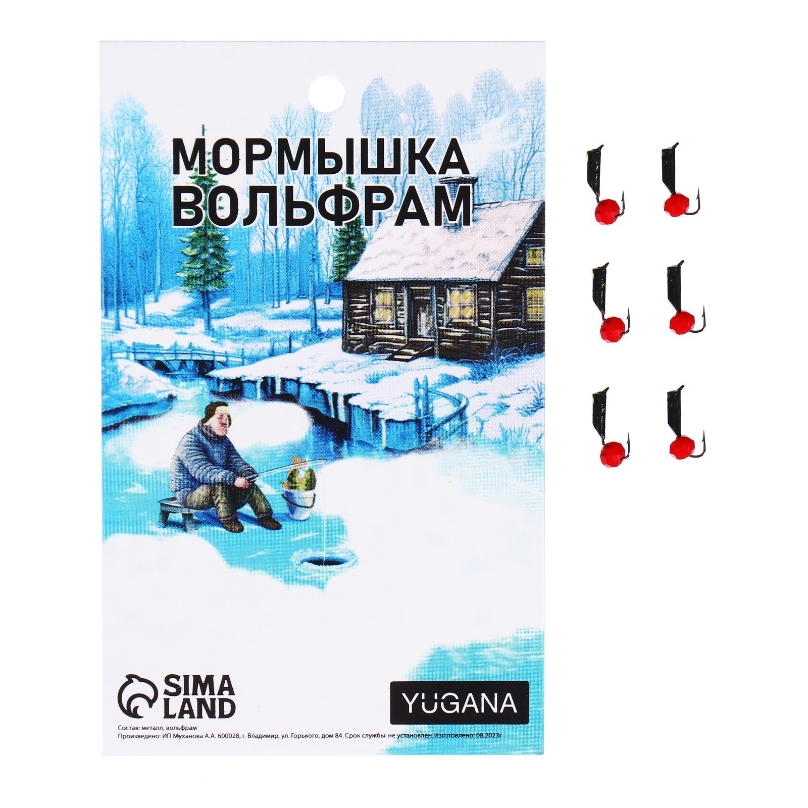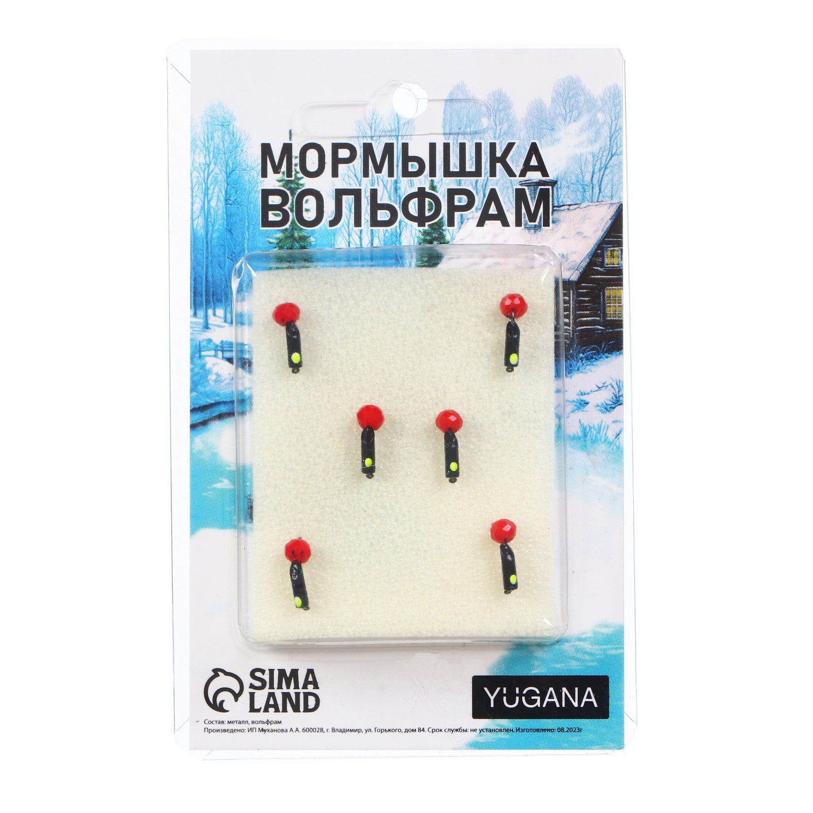 Мормышка столбик чёрный, лайм глаз + шар гранен красный, вес 0.4 г