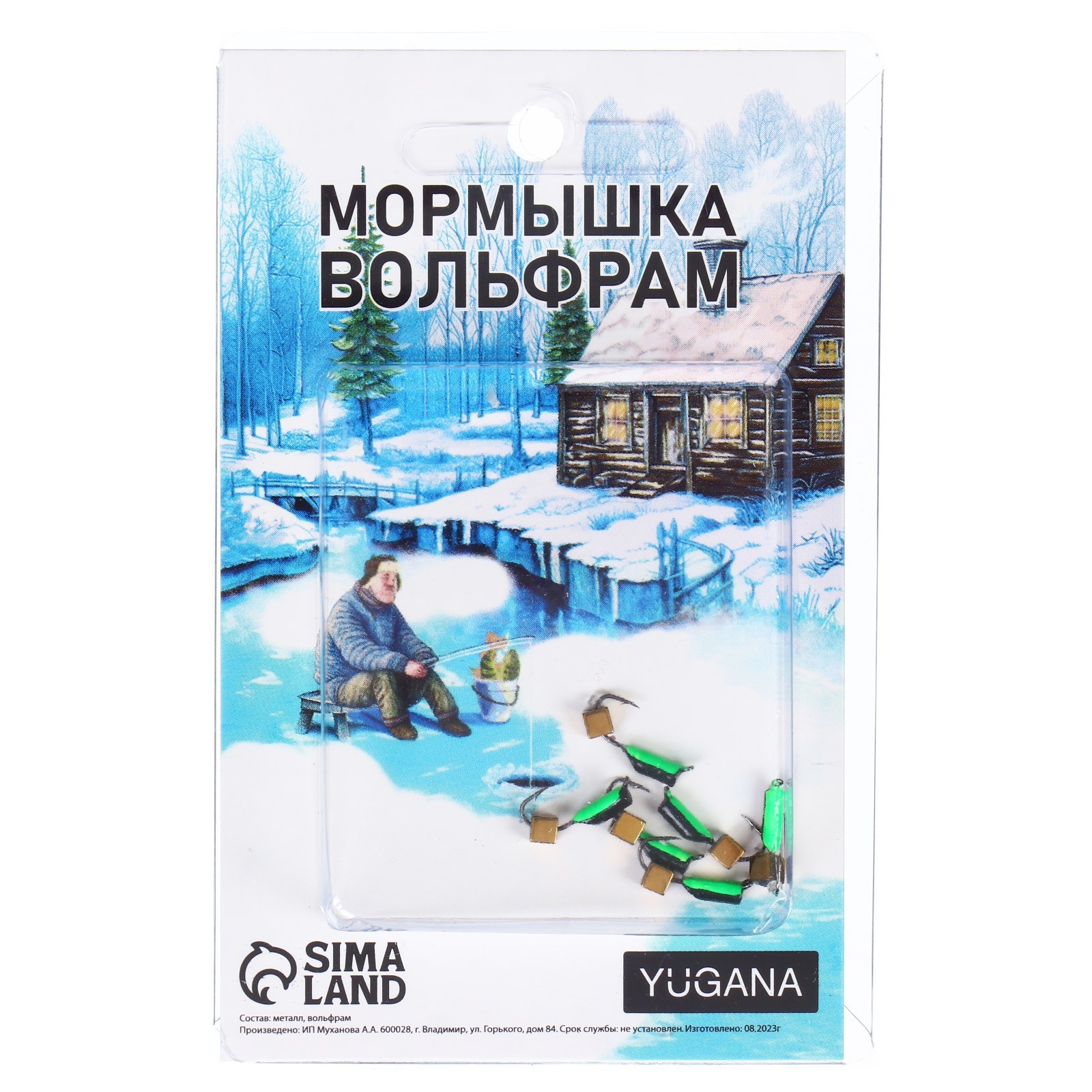 Мормышка столбик чёрный, зелёное брюшко + куб золотой, вес 0.45 г