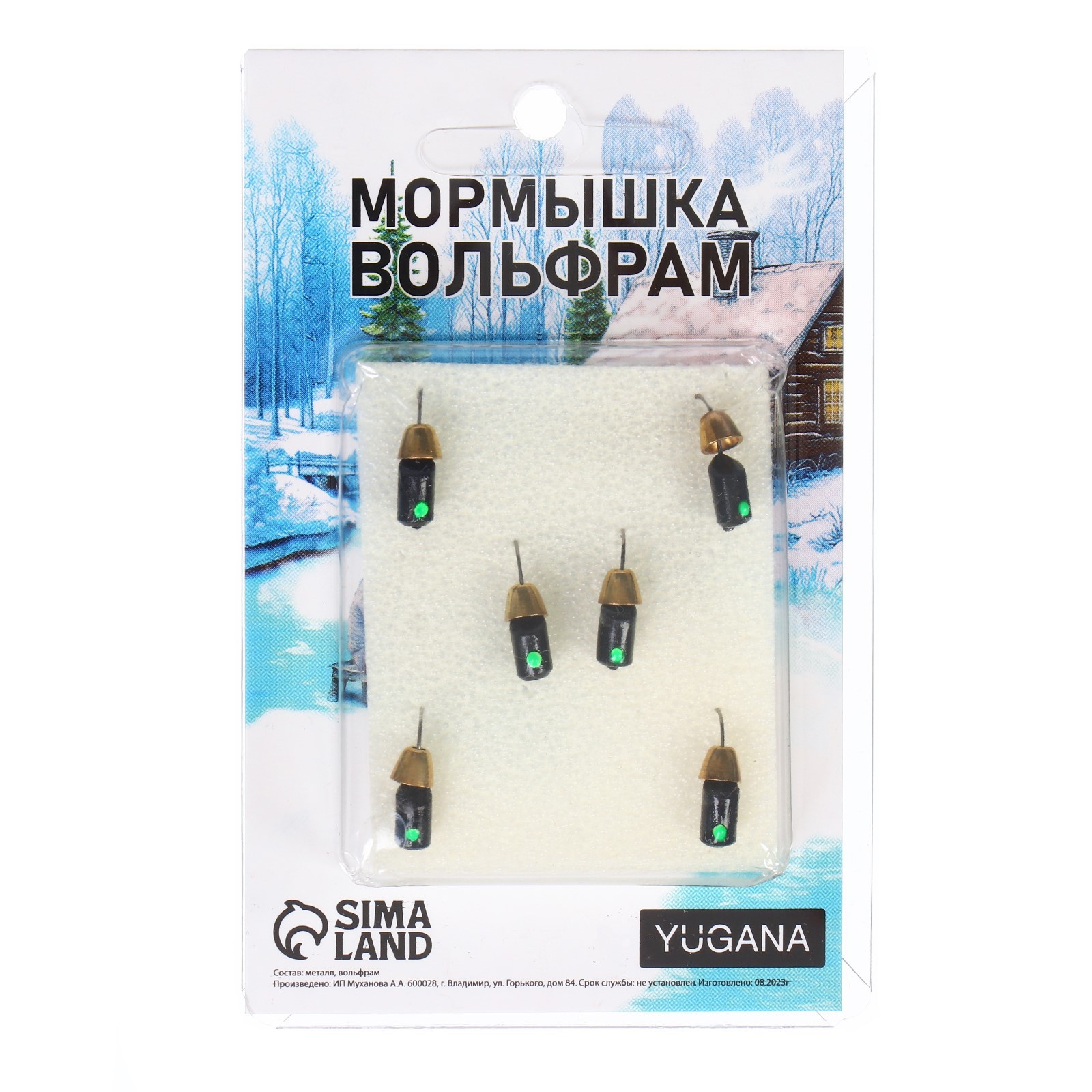 Мормышка столбик чёрный, зелёный глаз + колокол золотой, вес 1.5 г