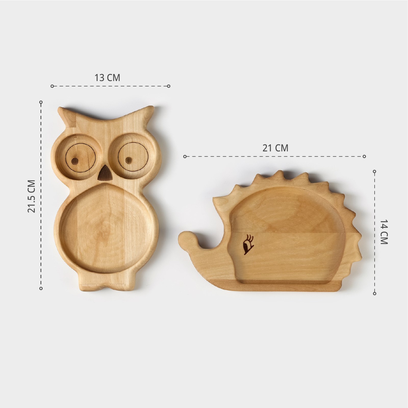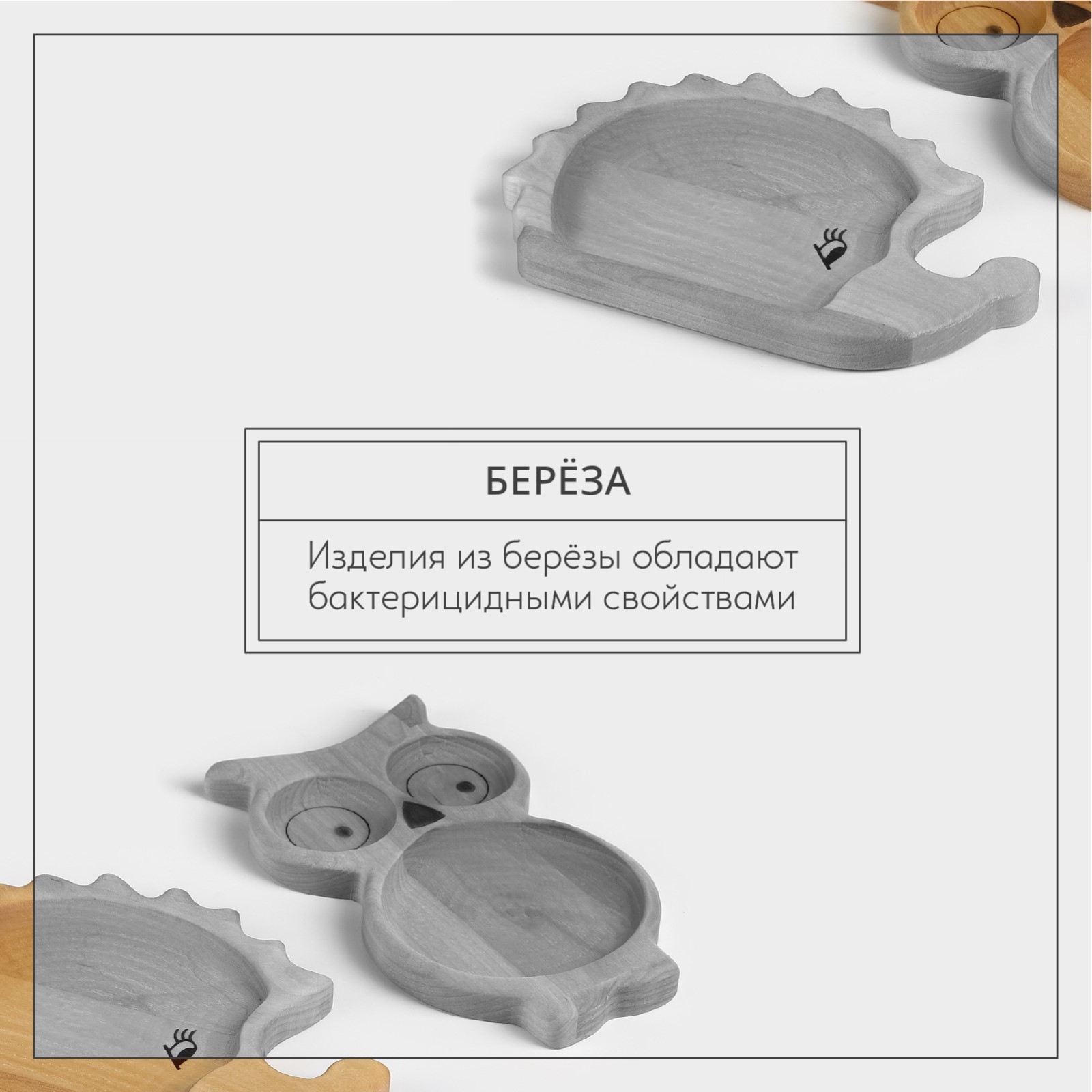 Набор деревянной посуды Adelica «советское детство», менажница, ежик 21x14x1,8 см, сова 21,5x13x1,8 см, в подарочной коробке
