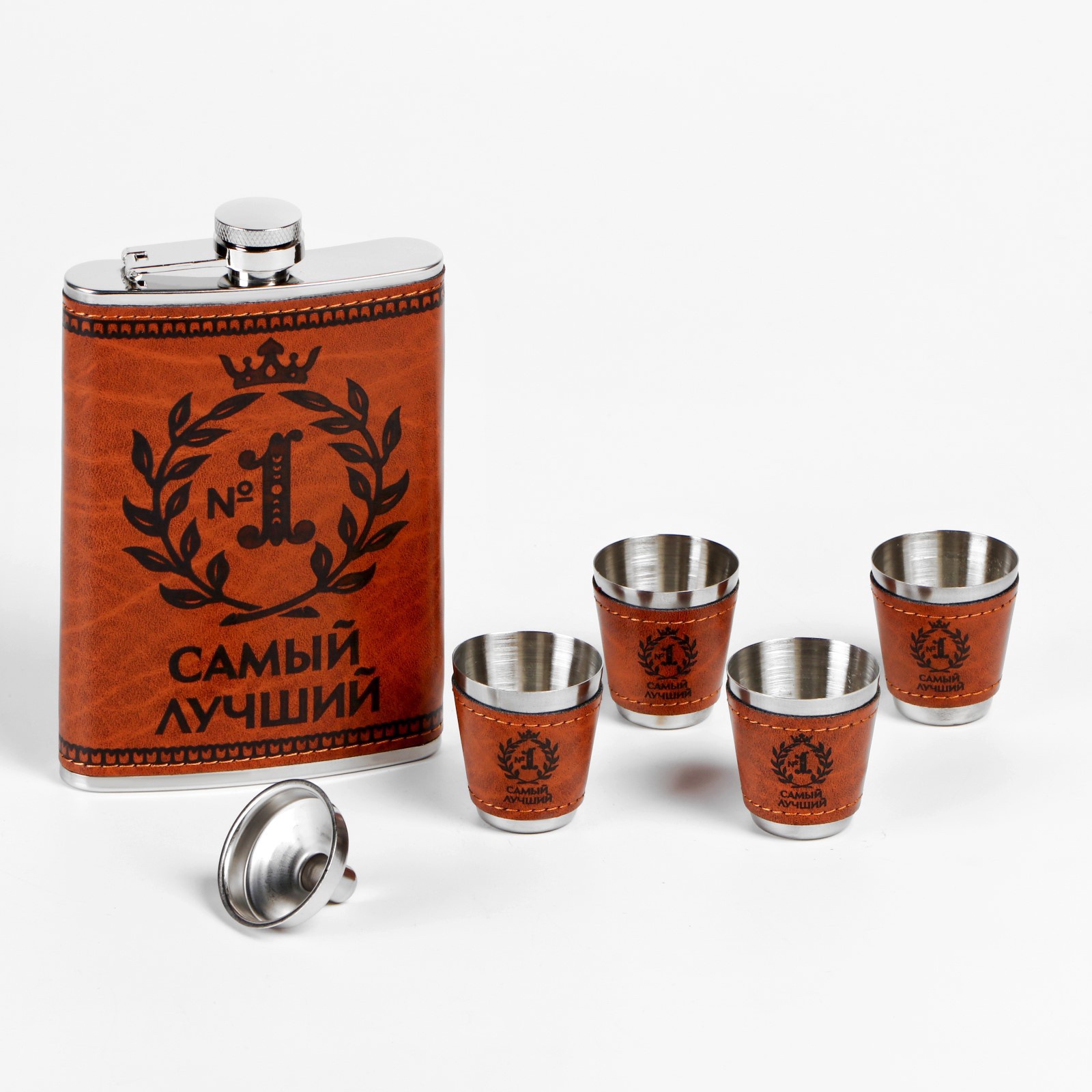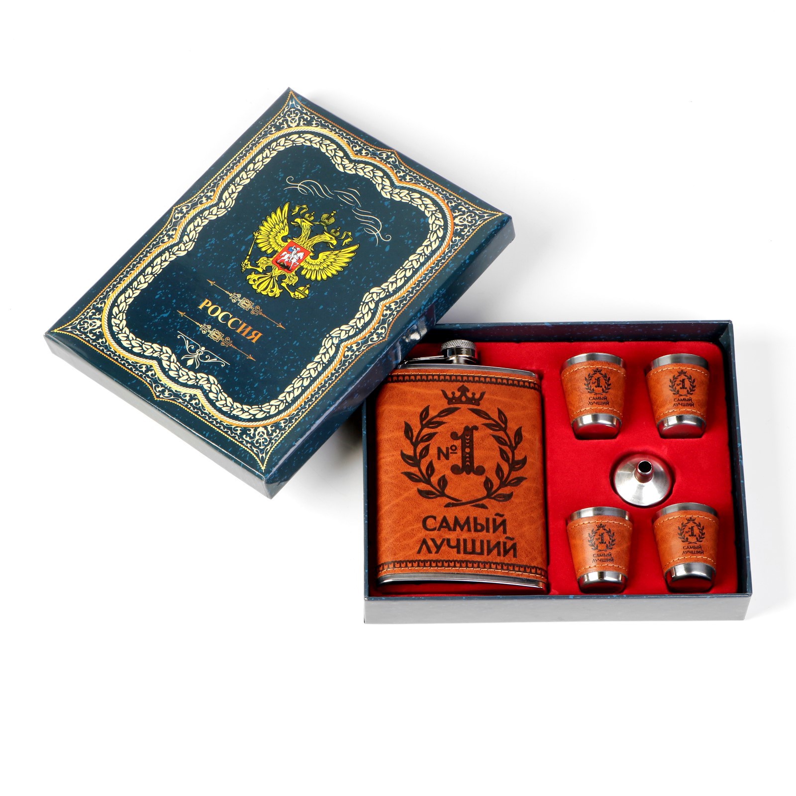 Подарочный набор «самый лучший»: фляжка 270 мл, 4 стопки, воронка. Когда речь идёт о том, что подарить сильному, брутальному и мужественному мужчине на какой либо повод, то голова идёт кругом! Один из самых интересных, памятных а так же практичных вариантов подарка-это набор с фляжкой! В наборе есть фляжка 270 мл, 4 стопки по 30 мл, воронка, что очень удобно и практично! Мужчины точно оценят! Упаковано в подарочную коробку. Цвет:Коричневый|Для кого:Для мужчины|В наборе, шт.:6|Объём, мл:30|Объём, мл:270|Вид упаковки:Коробка картонная|Рисунок:Да|Тематика праздника:Универсальная тематика|Адресат:Мужчине|Материал:Нержавеющая сталь|Составляющие набора:Рюмки (стопки)|Составляющие набора:Фляга|Составляющие набора:Воронка|Возраст:Для взрослых|Страна:Китай  развернуть описание ▼
