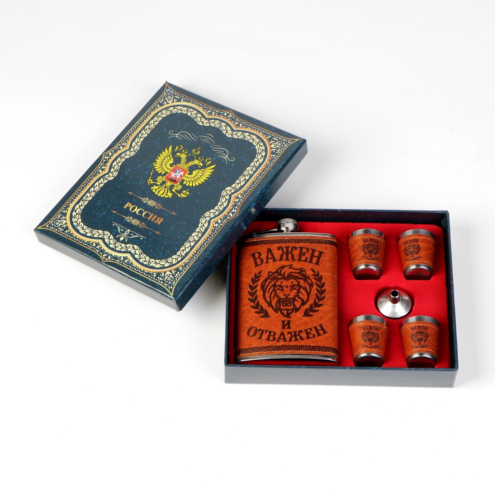 Подарочный набор 6 в 1 "важен и отважен": фляжка 270 мл, 4 стопки 30 мл, воронка
