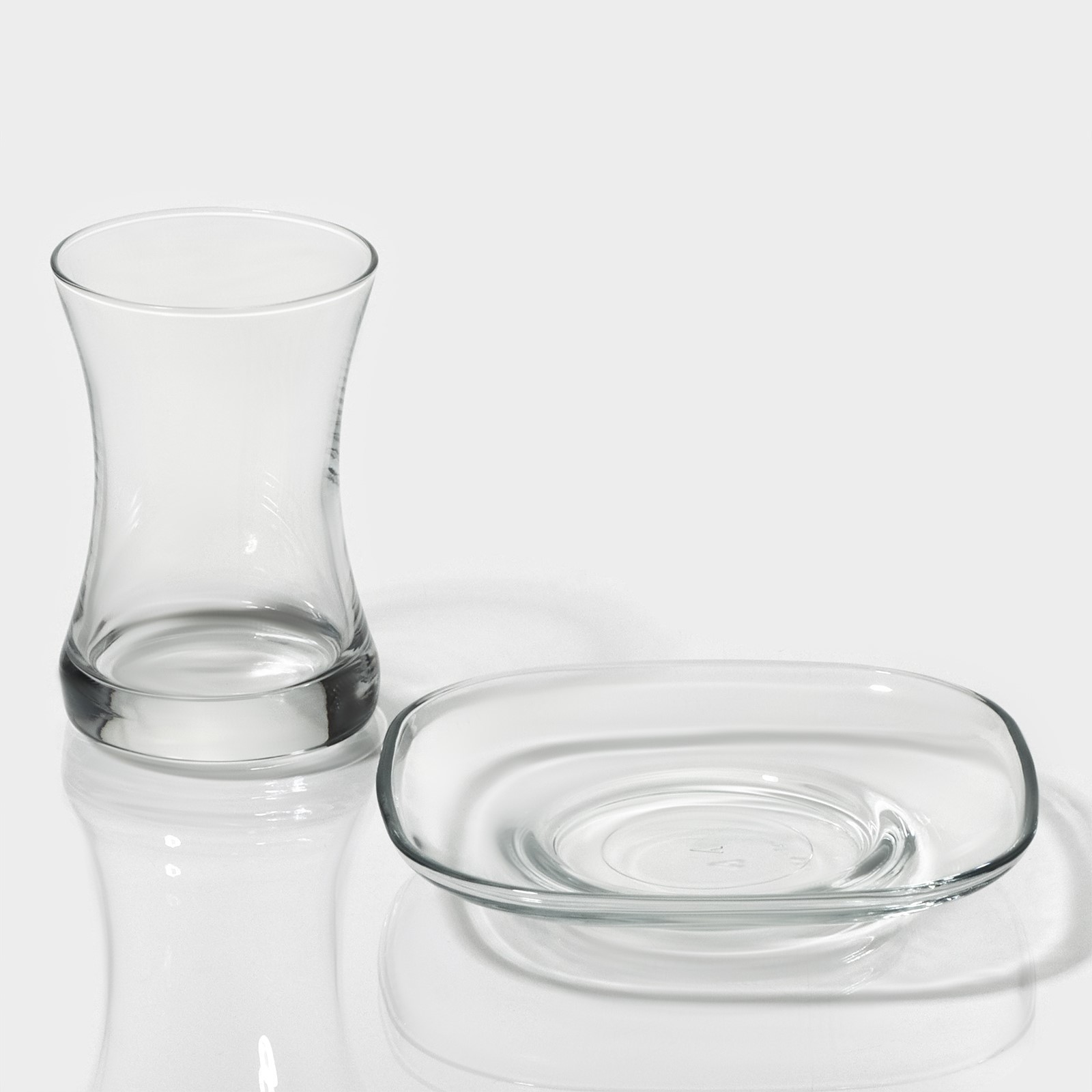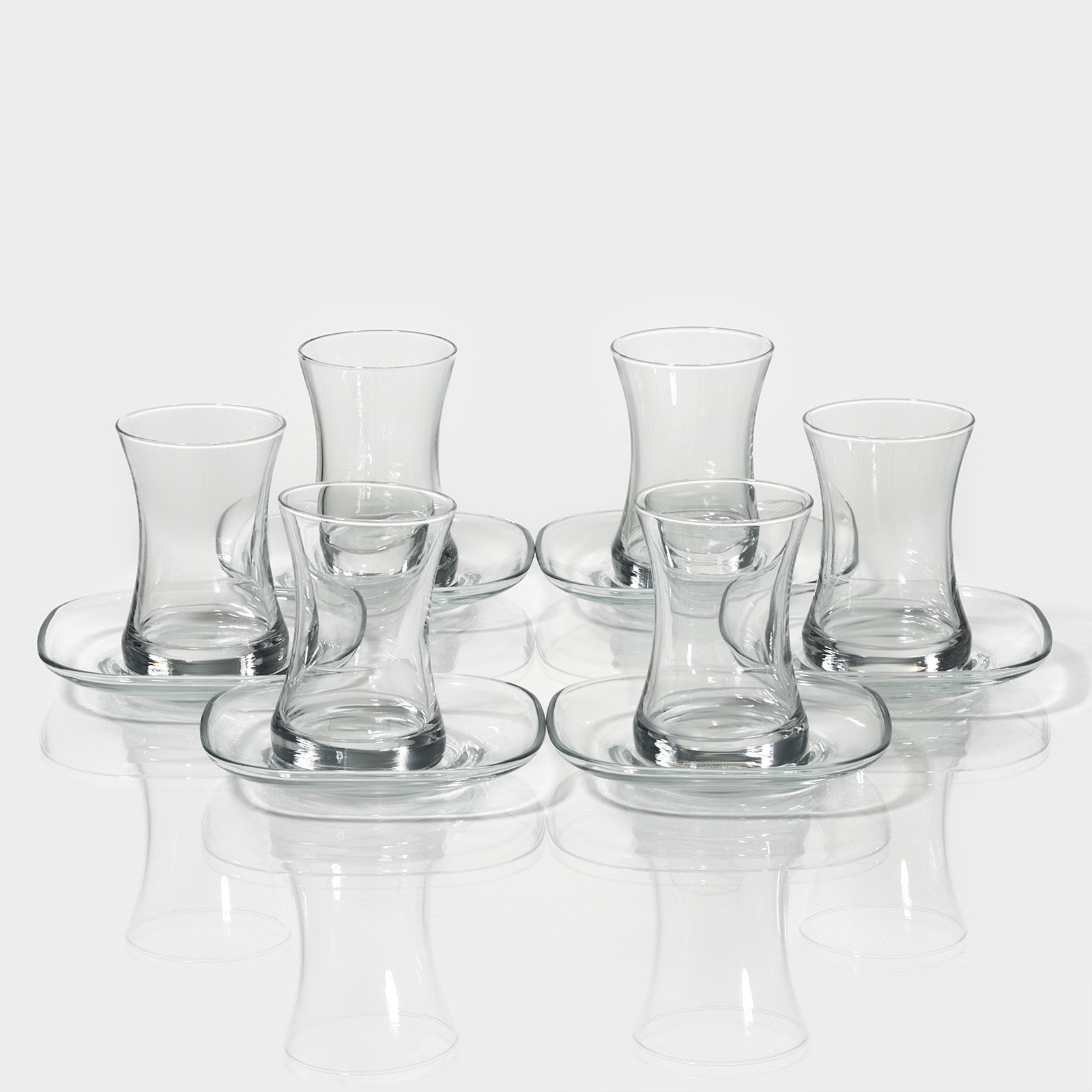 Набор стеклянный чайный Lav «дзен», 12 предметов: стаканы 155 мл (6 шт), блюдца D=14 см (6 шт)