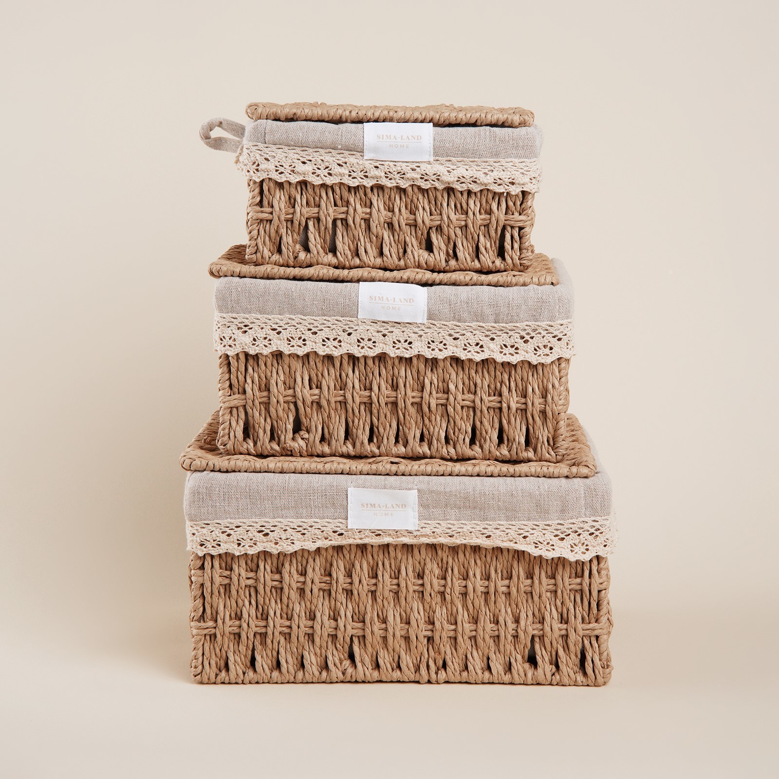 Набор корзин для хранения ручного плетения с крышкой, бумага, 3 шт: от 18х12х10 до 26х20х14.