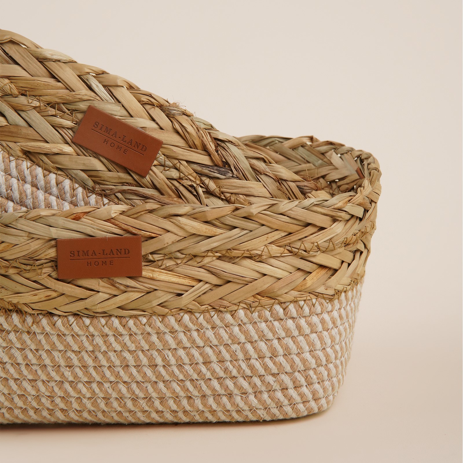Набор корзин для хранения ручного плетения, хлопок, кукуруза, 2 шт: 28х18х10, 30х20х12 см. Цвет: Бежевый Форма: Овальная Ширина, см: 31 Высота, см: 14 Глубина, см: 21 Крышка: Нет Материал: Солома Материал: Текстиль Основной материал: Солома Форма: Овал  развернуть описание ▼