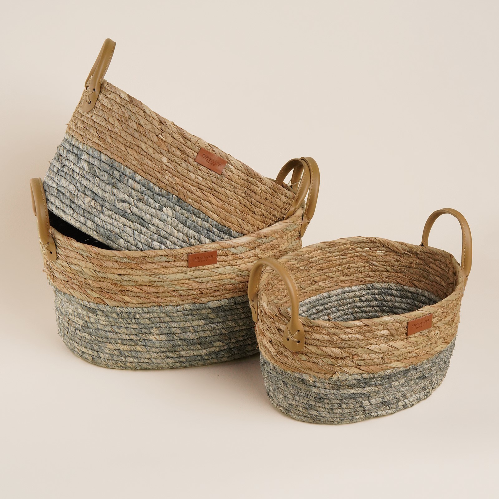 Набор корзин для хранения ручного плетения, хлопок, камыш, 3 шт: 30х23х16 до 37х27х19 см. Цвет: Бежевый Форма: Овальная Ширина, см: 38 Высота, см: 25 Глубина, см: 29 Крышка: Нет Материал: Текстиль Материал: Камыш Основной материал: Камыш Форма: Овал  развернуть описание ▼
