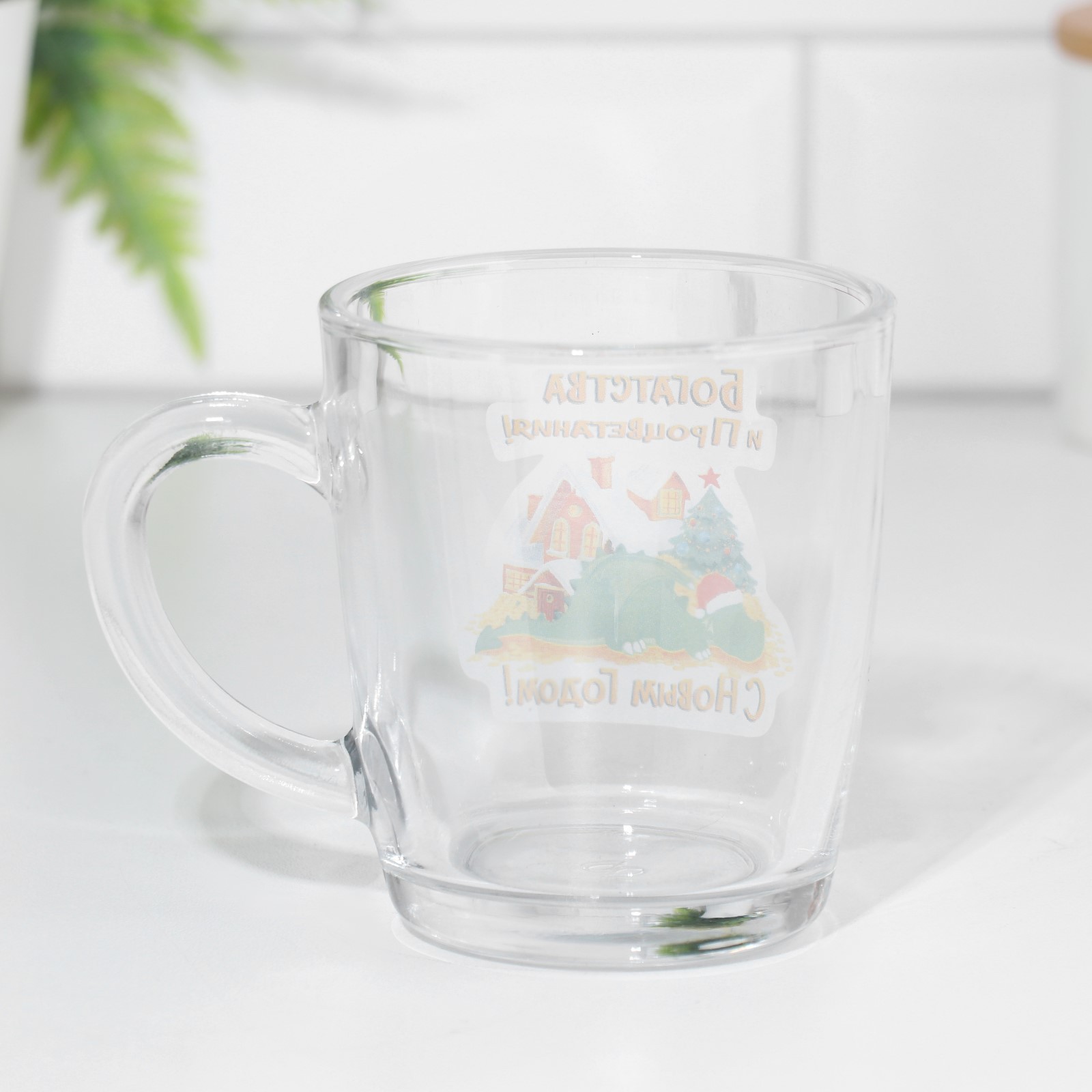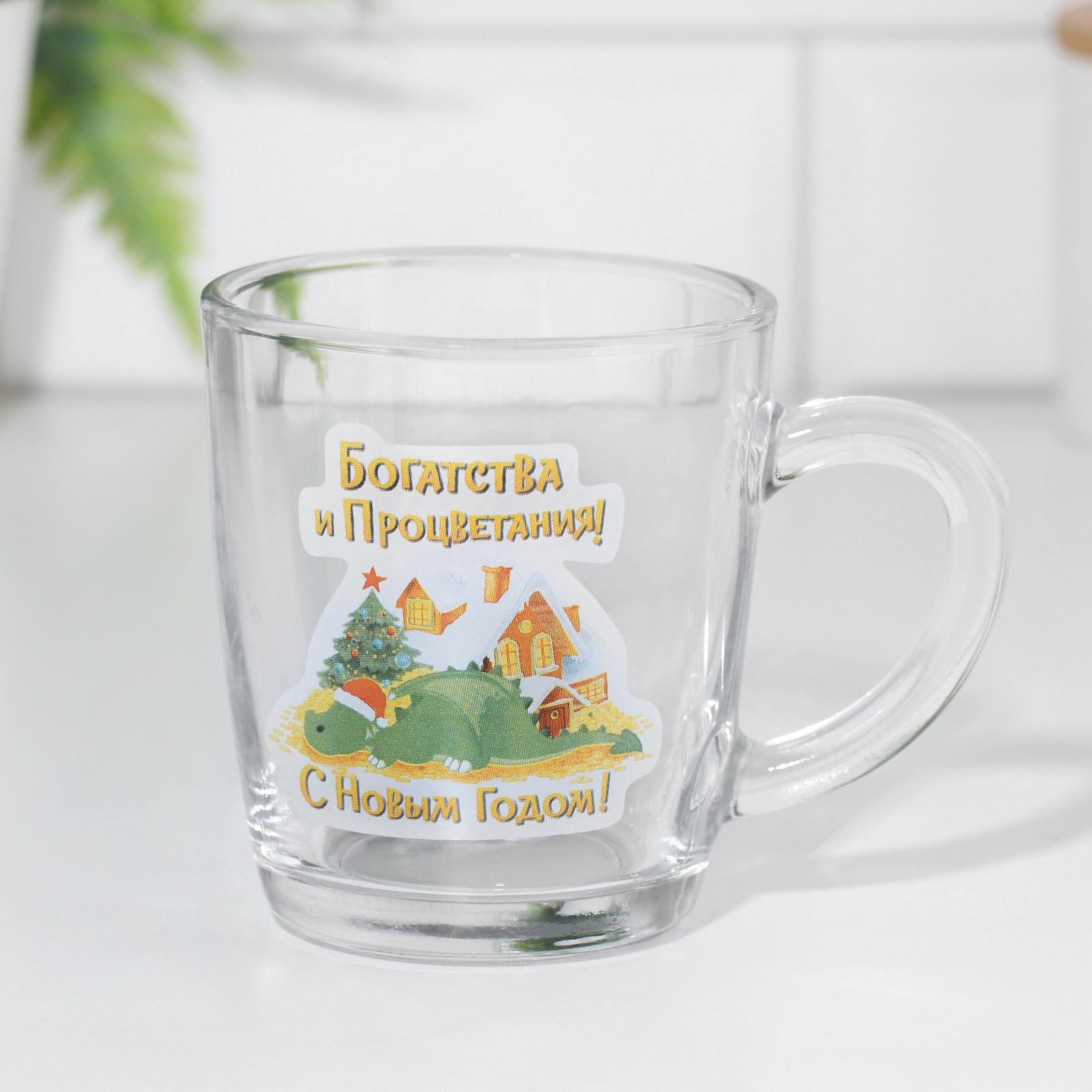 Кружка новогодняя "богатства и процветания!" 340мл, закаленное стекло, деколь, домик