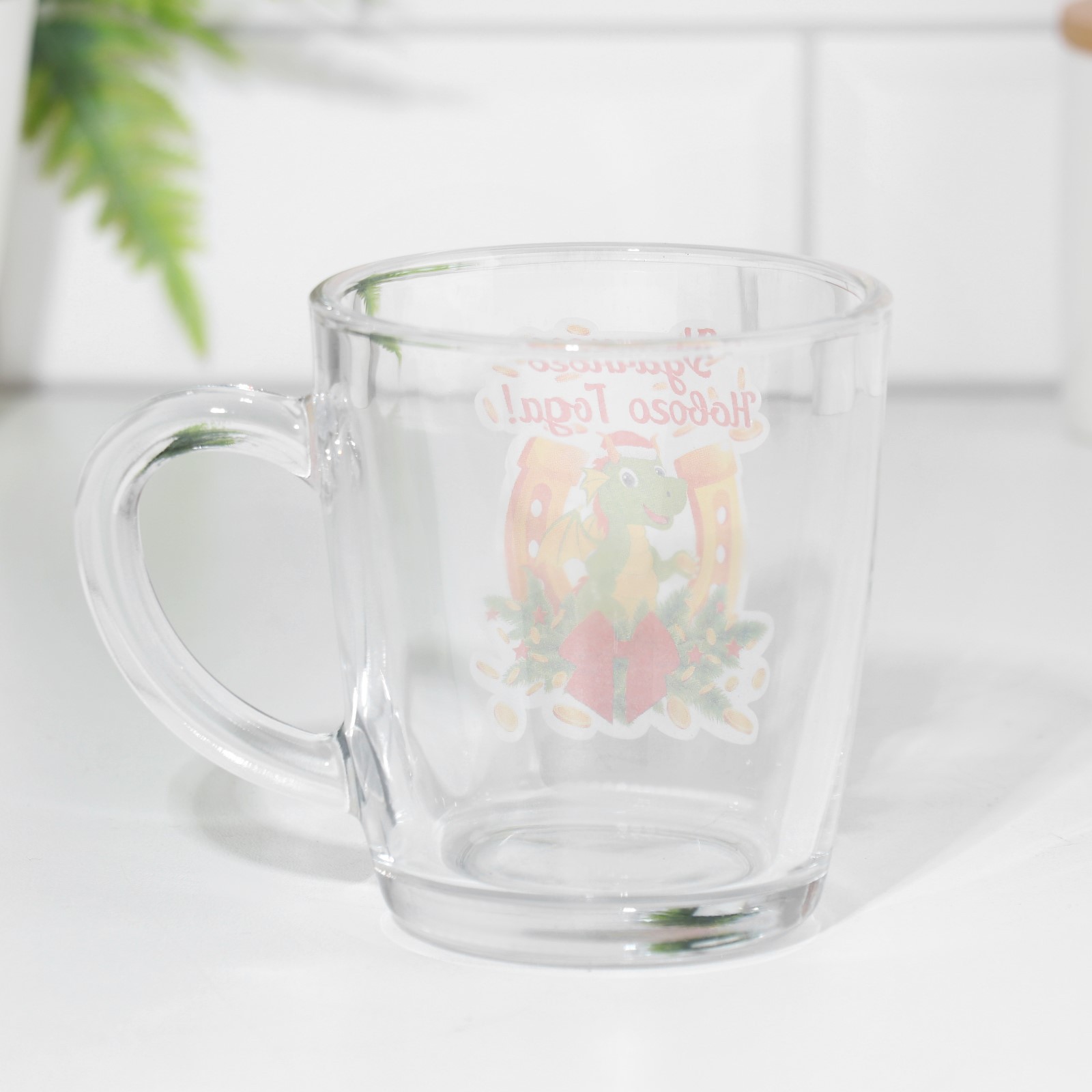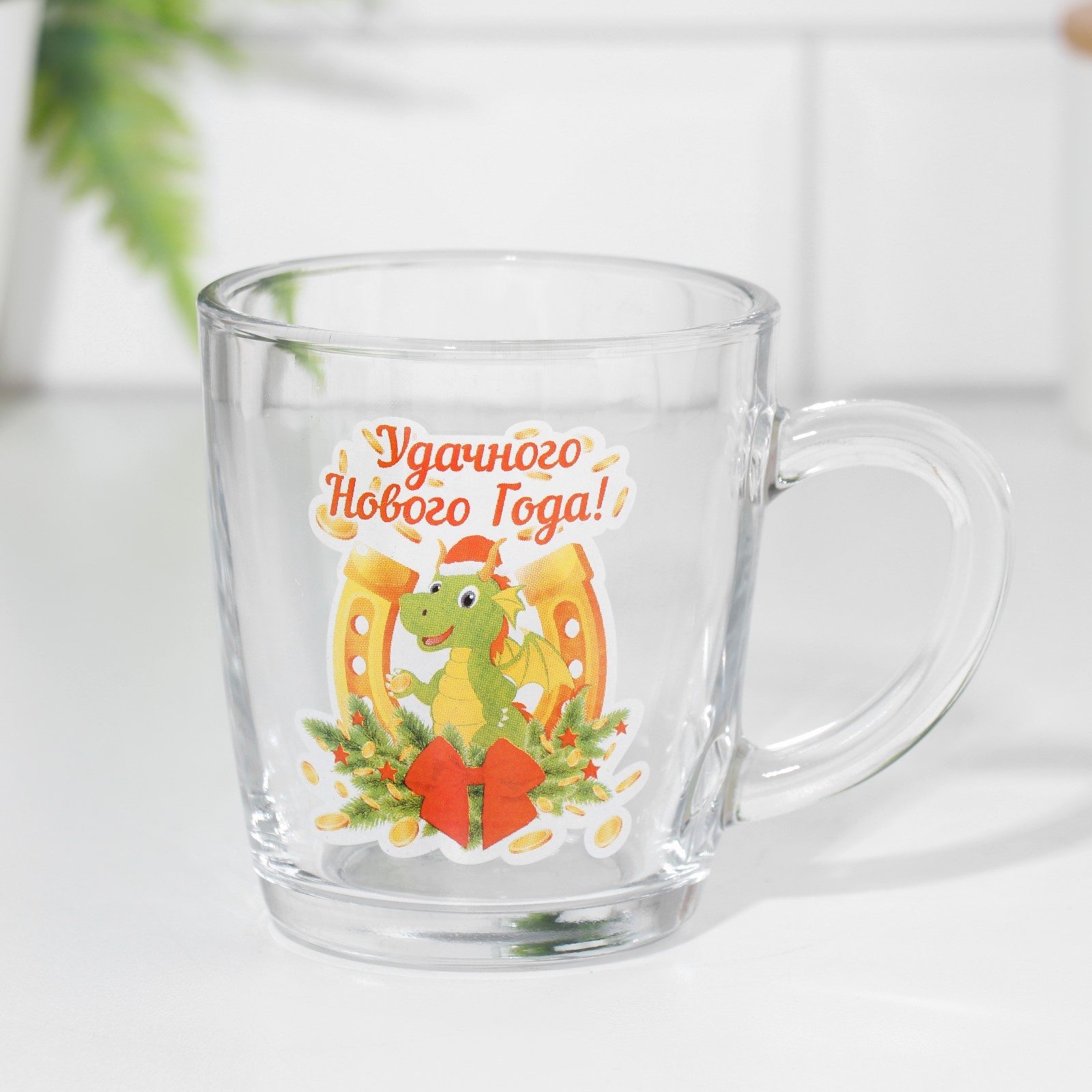 Кружка новогодняя "удачного нового года!" 340мл, закаленное стекло, деколь, подкова