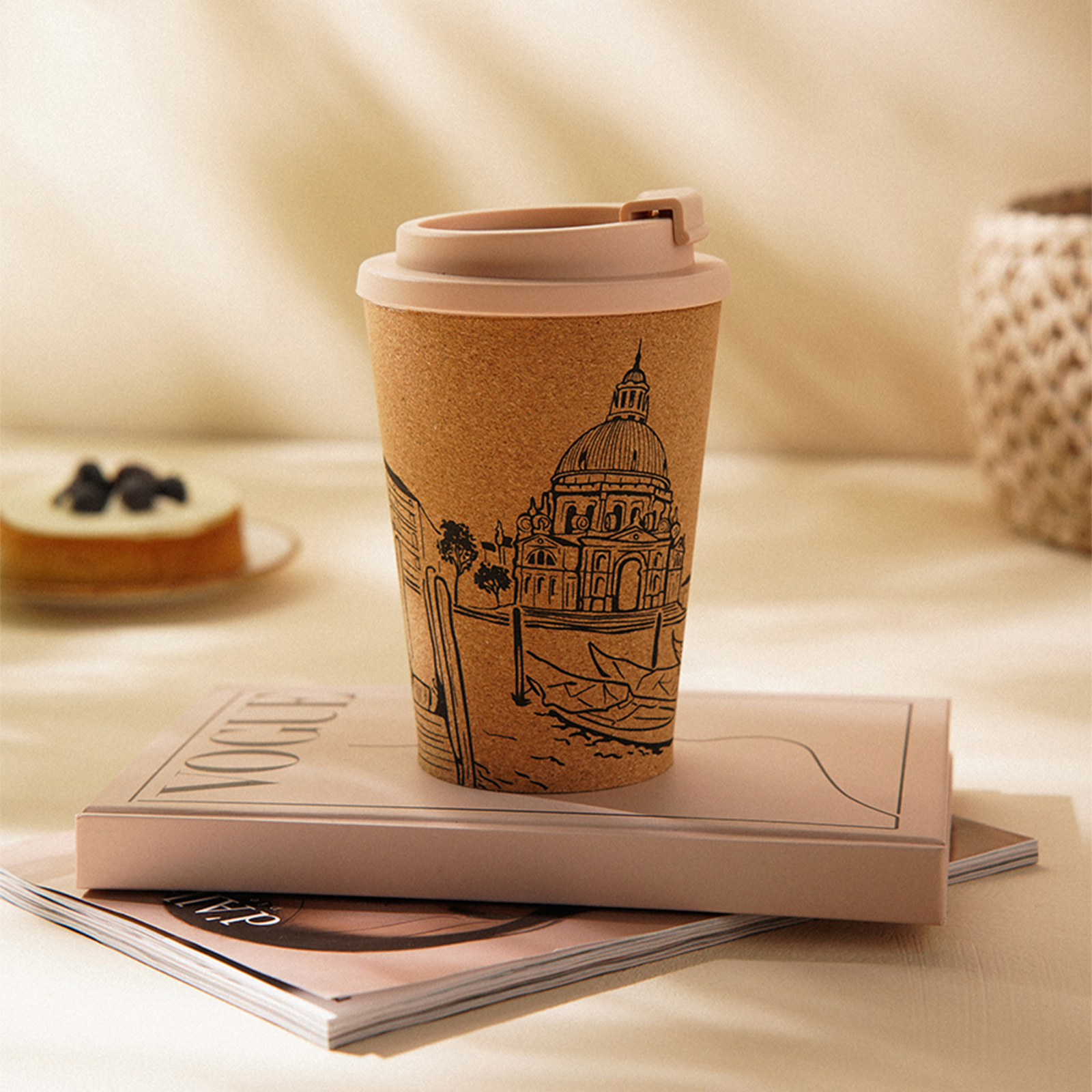 Стакан с крышкой пробковый Sima-land Home «венеция», 350 мл, 9,5x9,5x14,5 см, цвет бежевый