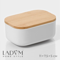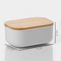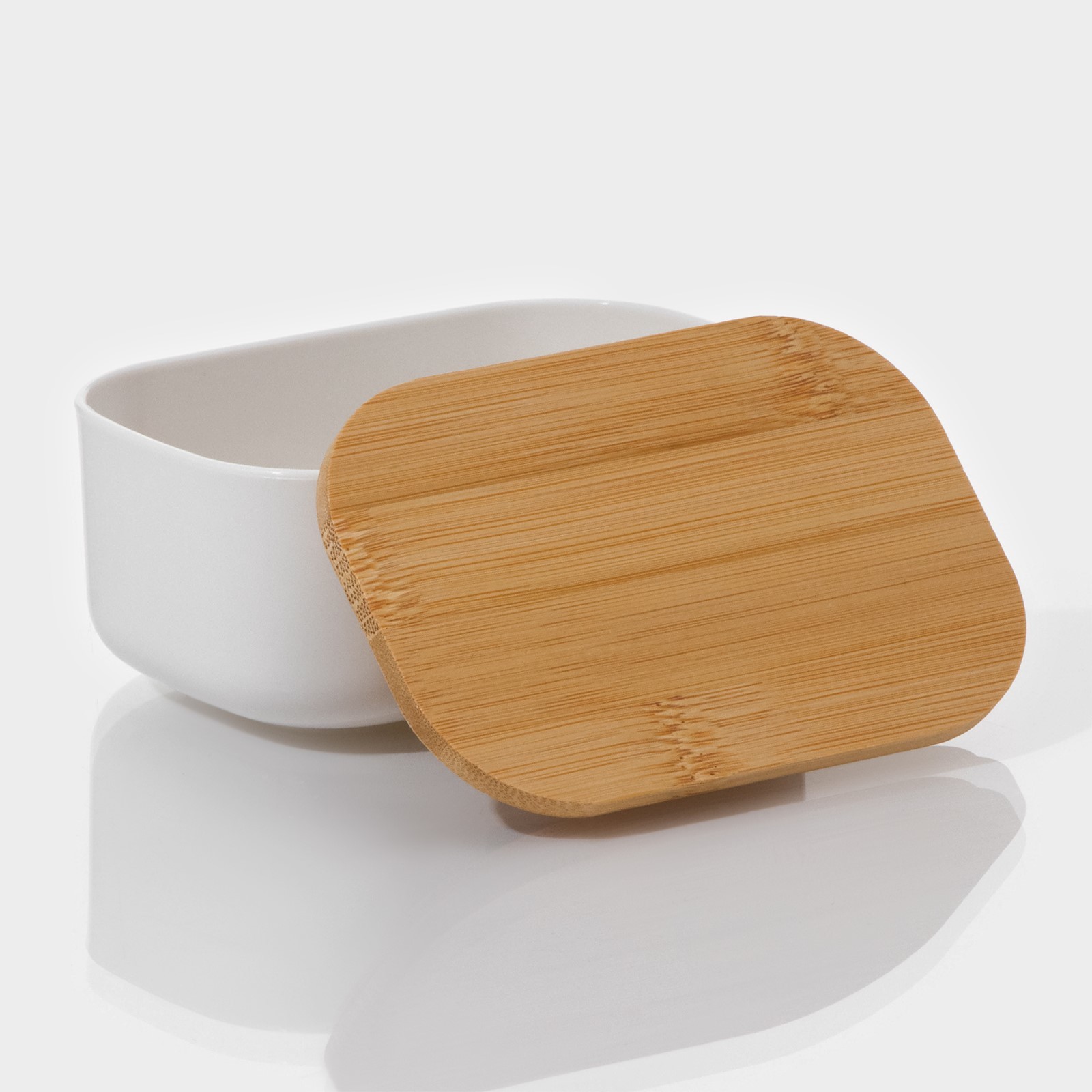 Array. Контейнер для хранения пригодится в каждом доме. Благодаря ему можно стилизовать любое помещение, убрать визуальный шум и уберечь вещи от различных внешних факторов. Он прочный и долговечный, так как изготовлен из высококачественного пластика. Он имеет прямоугольную форму и компактные размеры, что позволяет удобно разместить его на полке в шкафу или антресоли. Контейнер оснащен плотной крышкой, которая надежно защищает содержимое от попадания пыли, влаги и грязи. Кроме того, крышка из бамбука придает контейнеру стильный и современный вид. В таком контейнере можно хранить различные вещи, включая одежду, обувь, аксессуары и даже электронику. Благодаря своему универсальному дизайну, контейнер легко впишется в любой интерьер и станет его гармоничным дополнением. Цвет: Белый Ширина, см: 7.5 Глубина, см: 4.2 Высота, см: 5 Крышка: Да Материал: Пластик Колёса/ролики: Нет Вид: Контейнер  развернуть описание ▼
