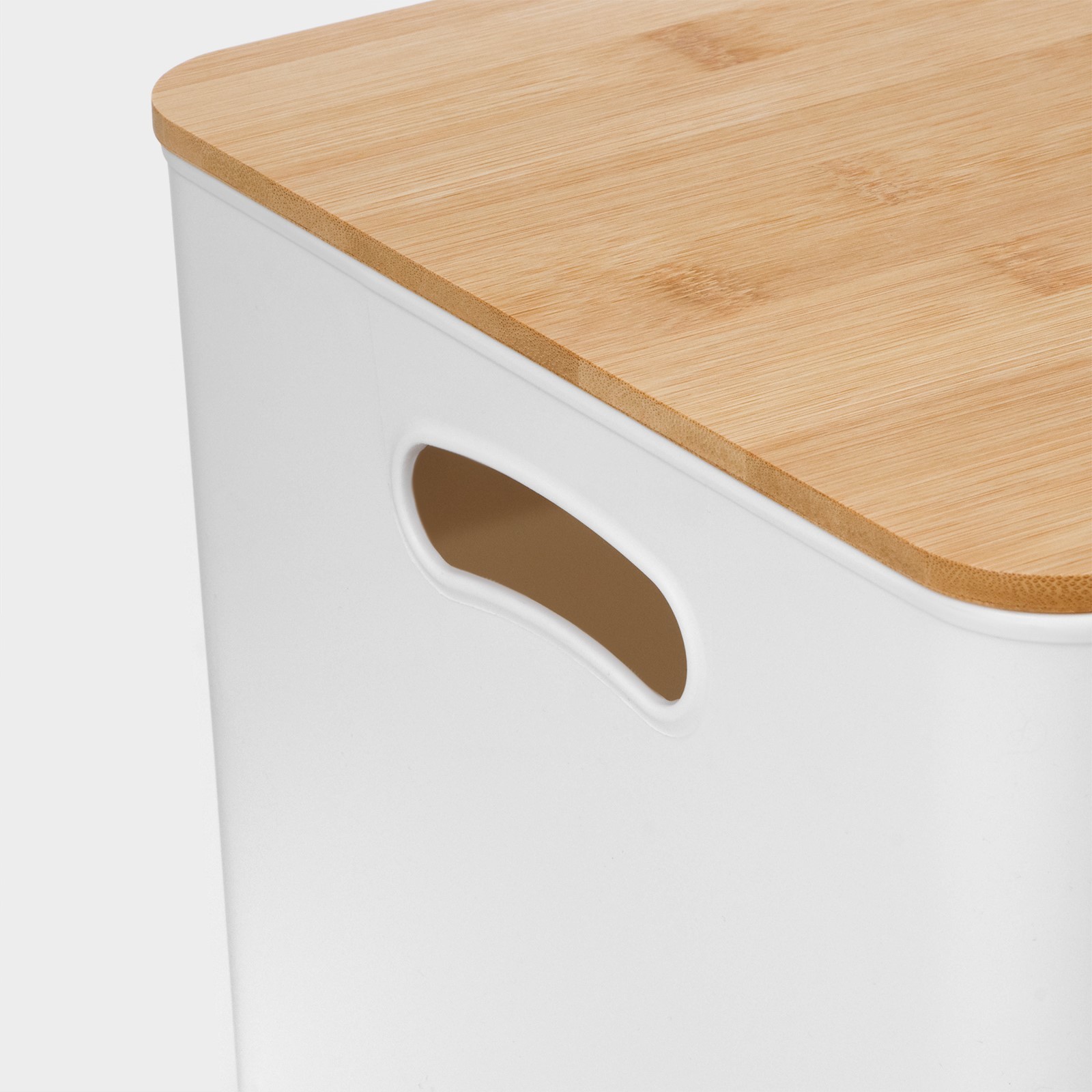 Контейнер оснащен плотной крышкой, которая надежно защищает содержимое от попадания пыли, влаги и грязи. Кроме того, крышка из бамбука придает контейнеру стильный и современный вид.