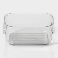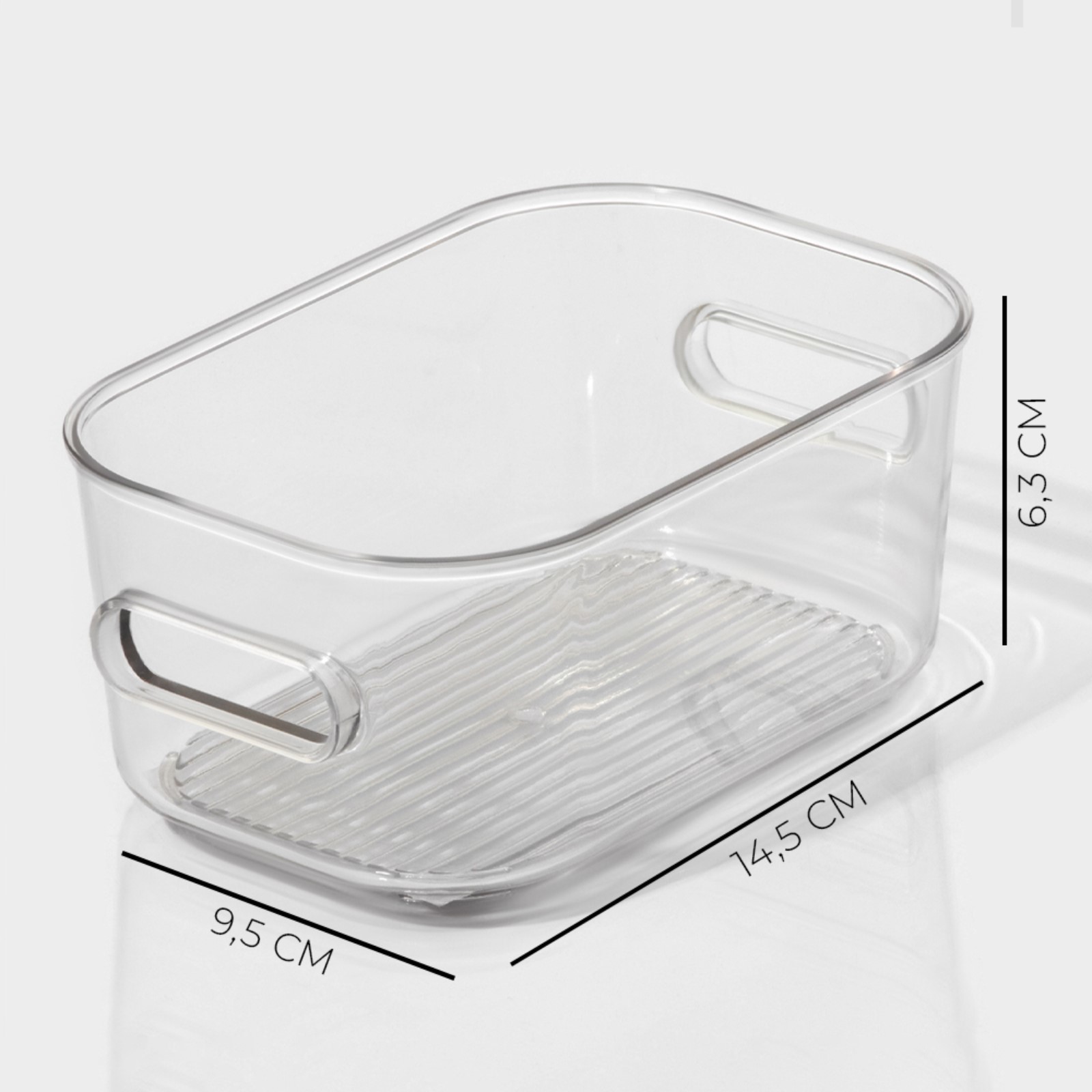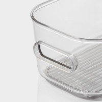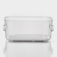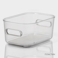Он прочный и долговечный, так как изготовлен из высококачественного пластика. Он имеет прямоугольную форму, ручки и компактные размеры, что позволяет удобно разместить его на полке в шкафу или антресоли.