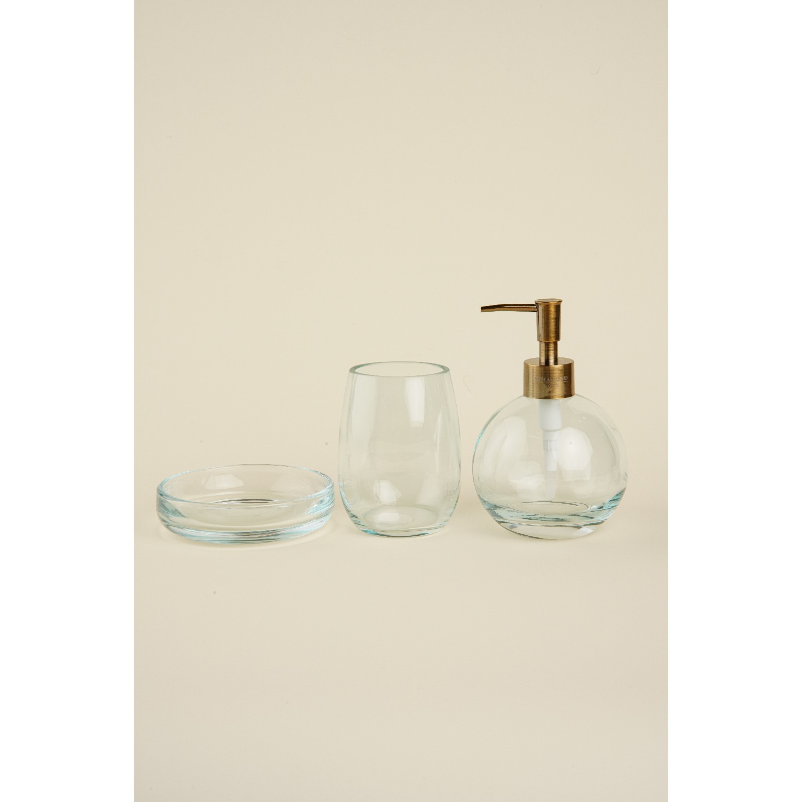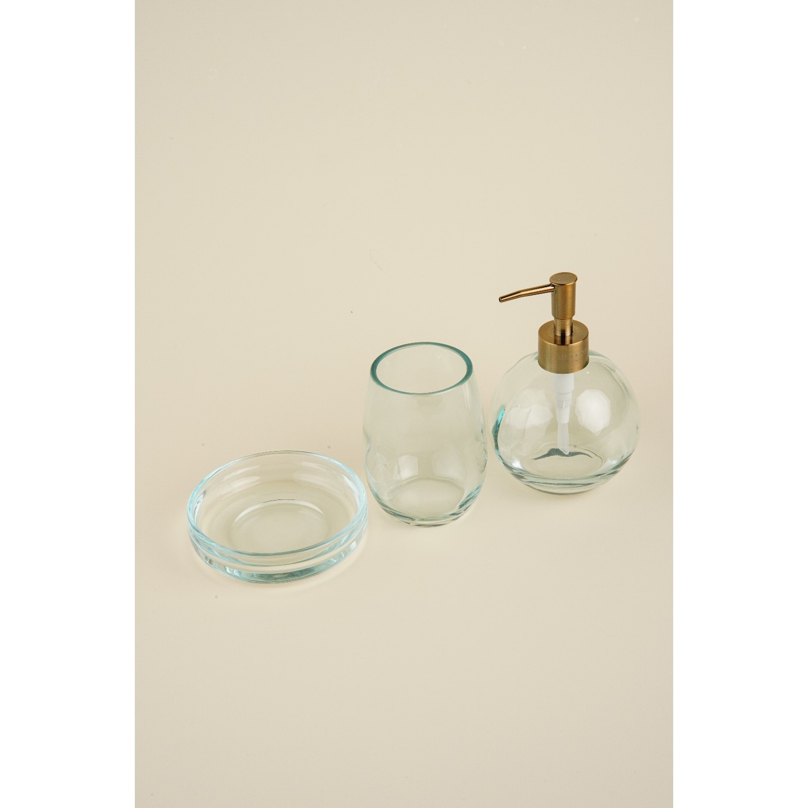Набор для ванной, 3 предмета: дозатор, мыльница, стакан. Цвет: Прозрачный В наборе, шт.: 3 Тематика: Однотонная Материал: Пластик Материал: Стекло  развернуть описание ▼