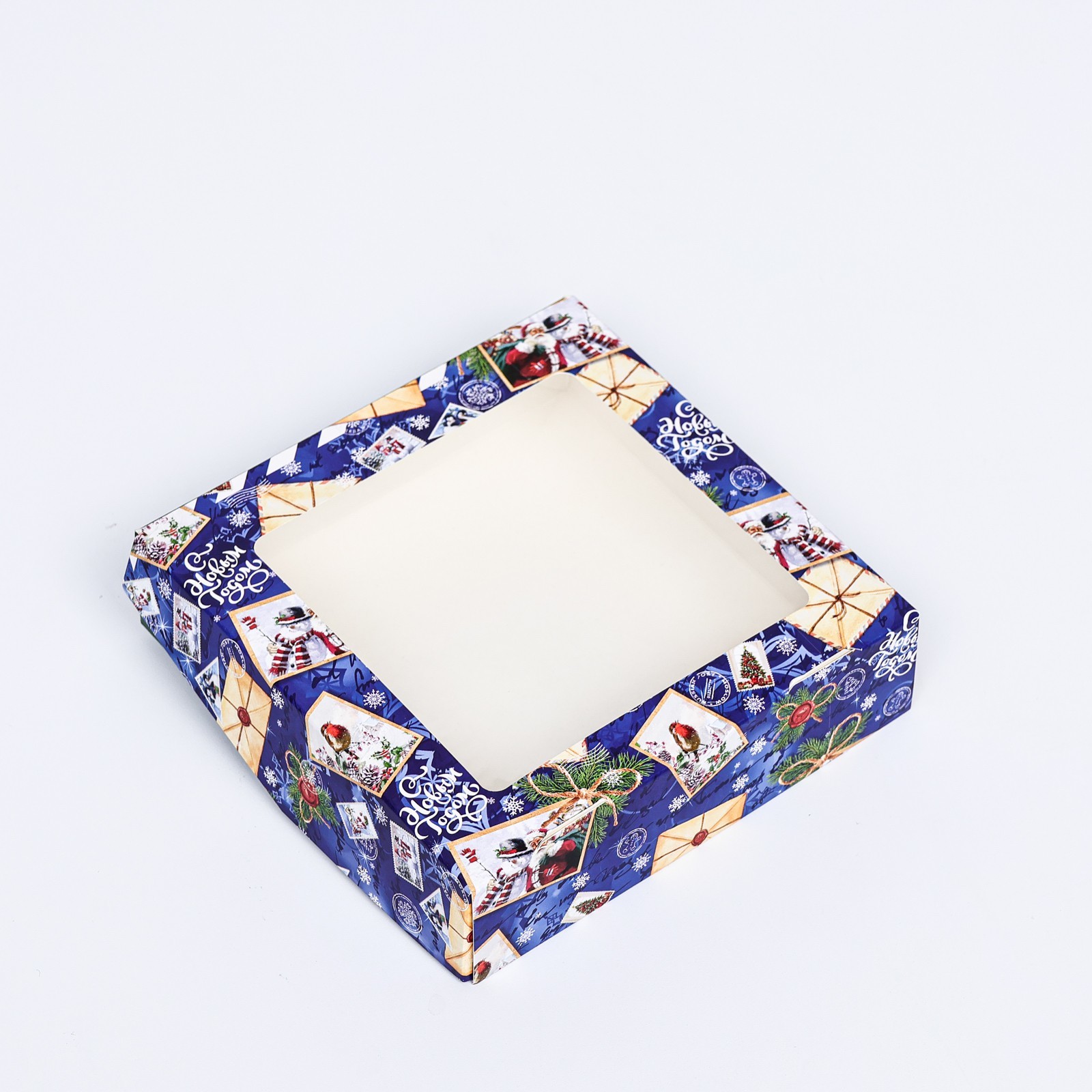 Коробка подарочная новогодняя складная с окном «с новым годом», 15 15 4 см. Коробка складная новогодняя - идеальное решение для упаковки и подарка новогодних сюрпризов. Её праздничный дизайн с символами Нового года создает особую атмосферу и делает эту коробку идеальным выбором для упаковки подарков в преддверии праздника. Подарите радость и праздничное настроение в компактной и удобной коробке Цвет:Синий|Форма:Квадратная|Длина, см:15|Ширина, см:15|Высота, см:4|Тематика:Новогодняя|Символ года:Нет|Тематика праздника:Новый год|Материал:Ламинированный картон|Вид:Складные коробки|Размер:Малый (11-17 см)|Окошко:Да|Крышка-дно:Нет|Страна:Россия  развернуть описание ▼