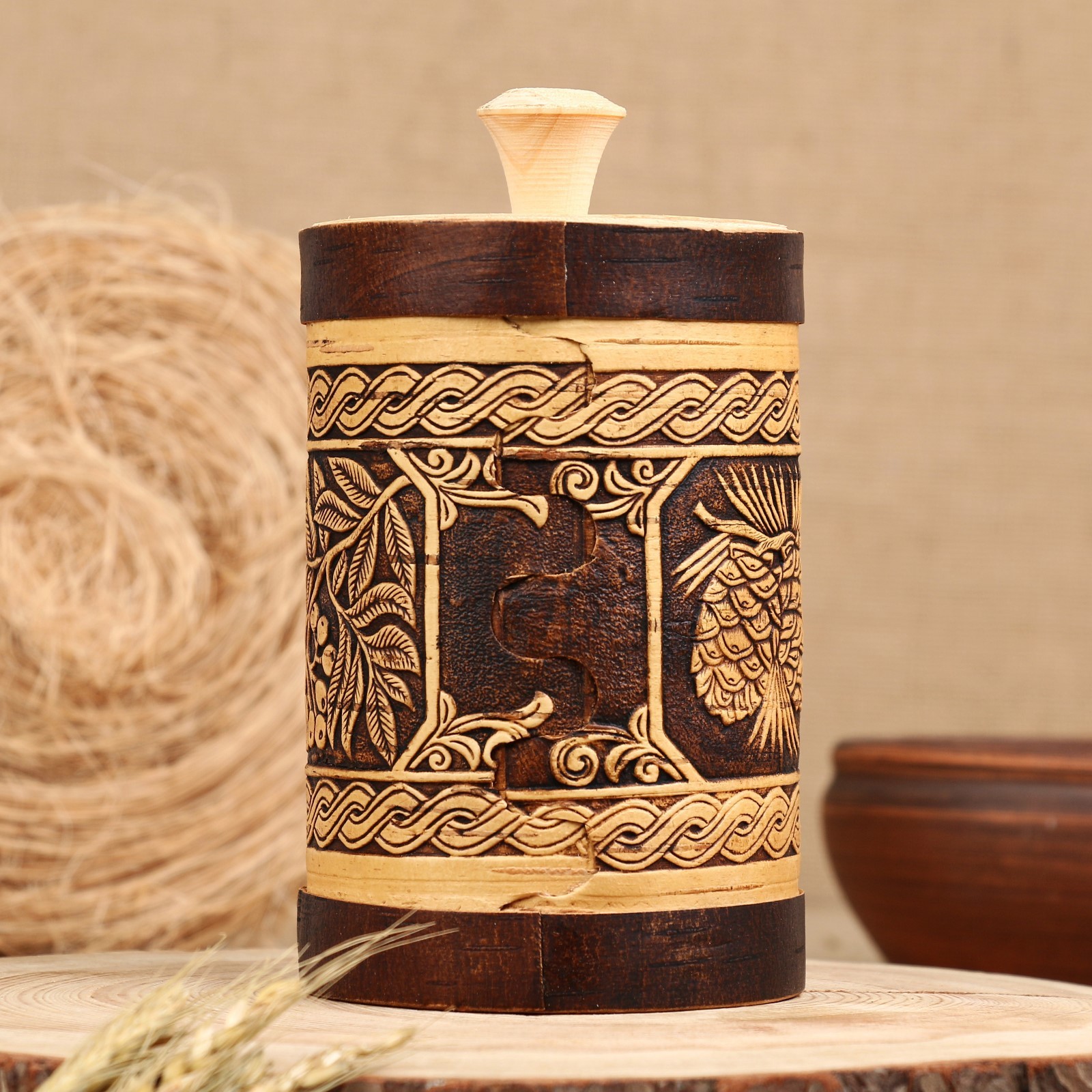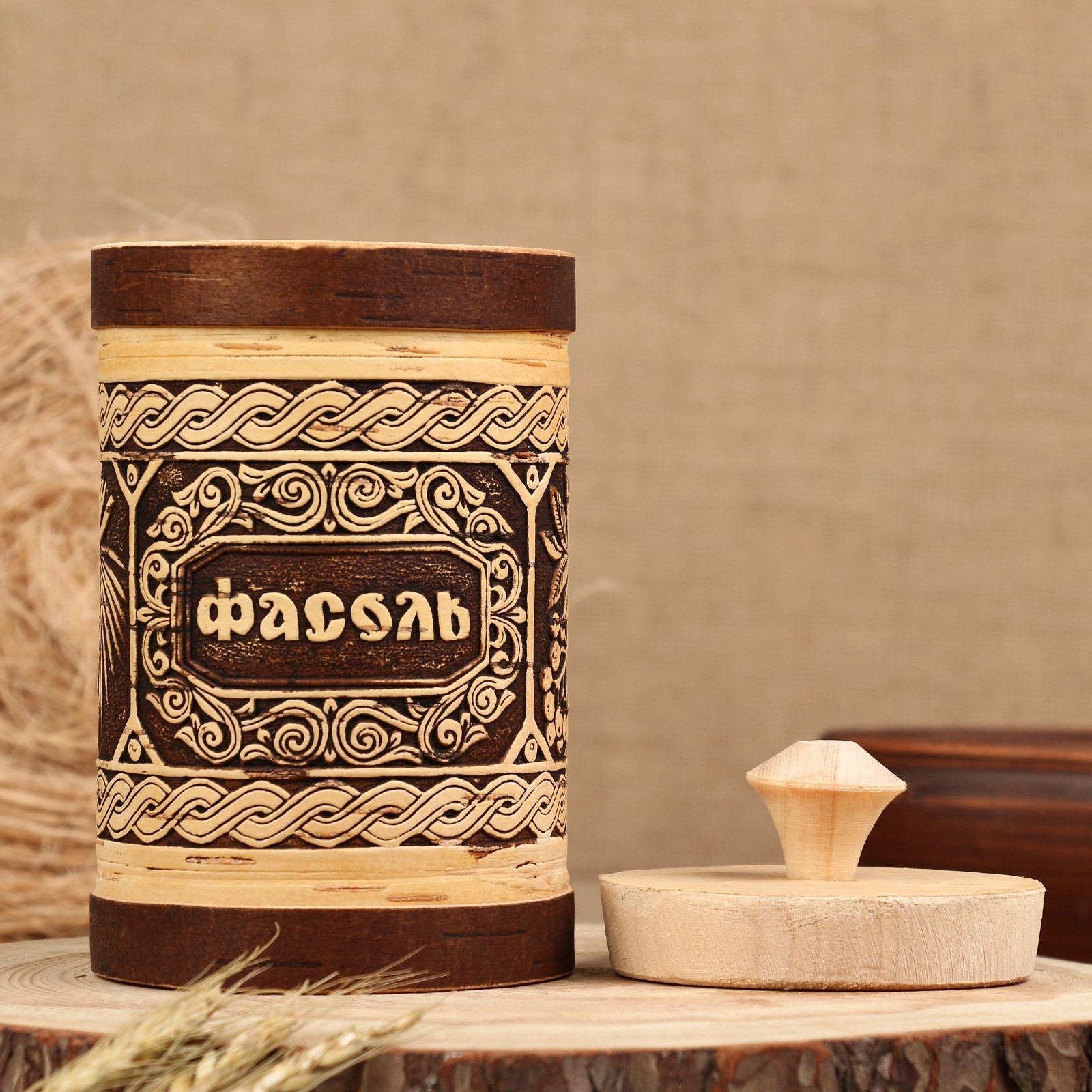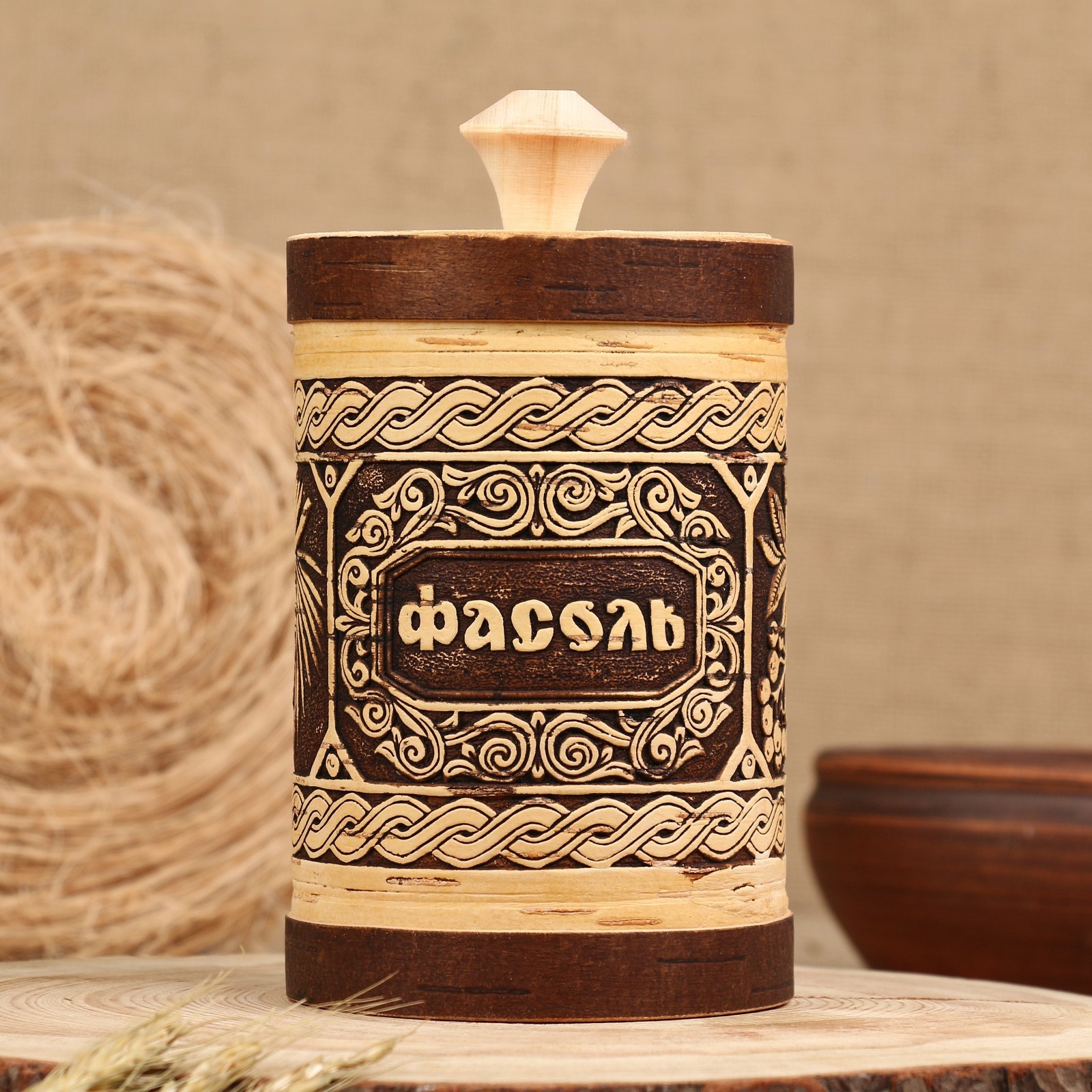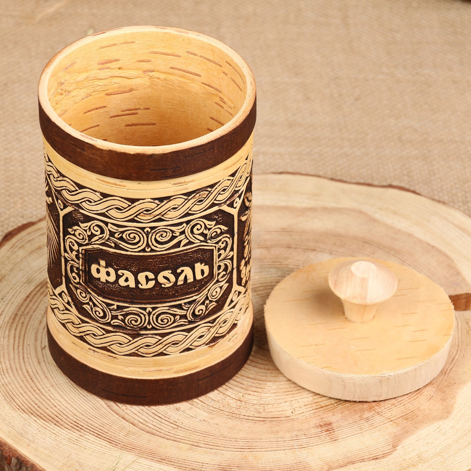 Туес "шишки" для фасоли, 18 см, D=10 см, 1 л, береста
