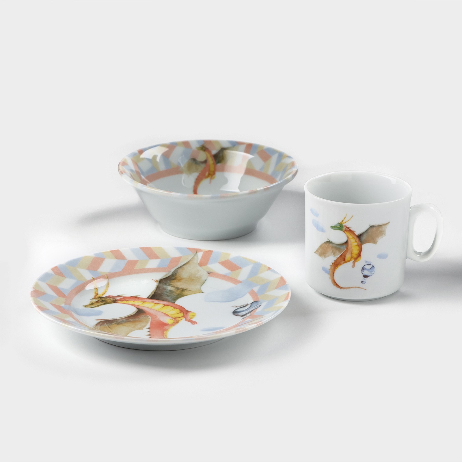 Набор фарфоровой посуды «страна драконов», 3 предмета: кружка 200 мл, тарелка, салатник 360 мл, фарфор