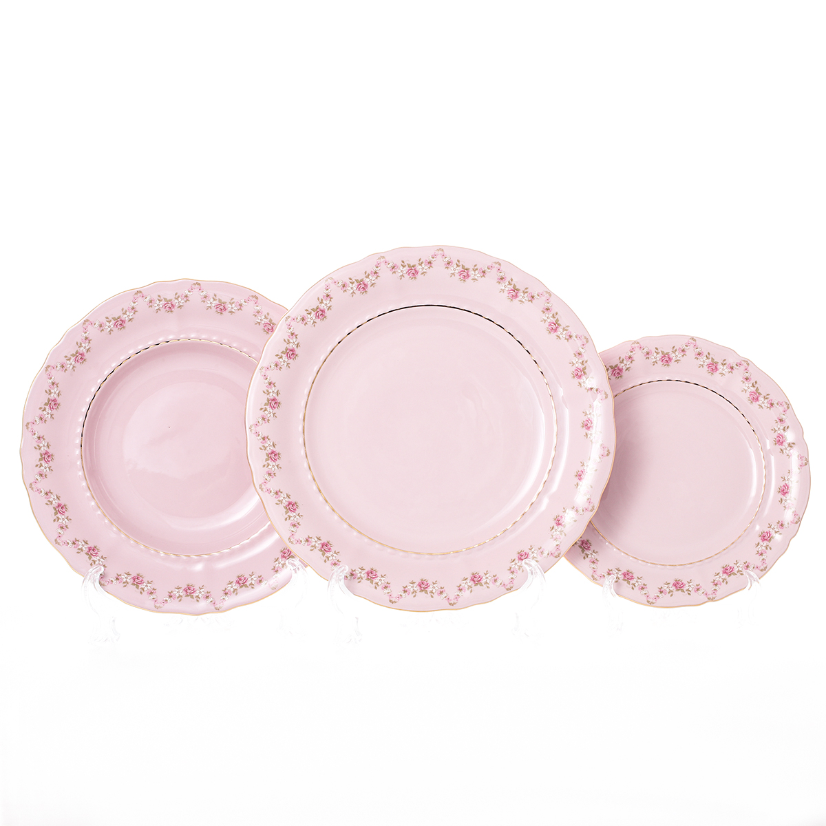 Набор тарелок Leander соната мелкие цветы розовый фарфор 18 предметов