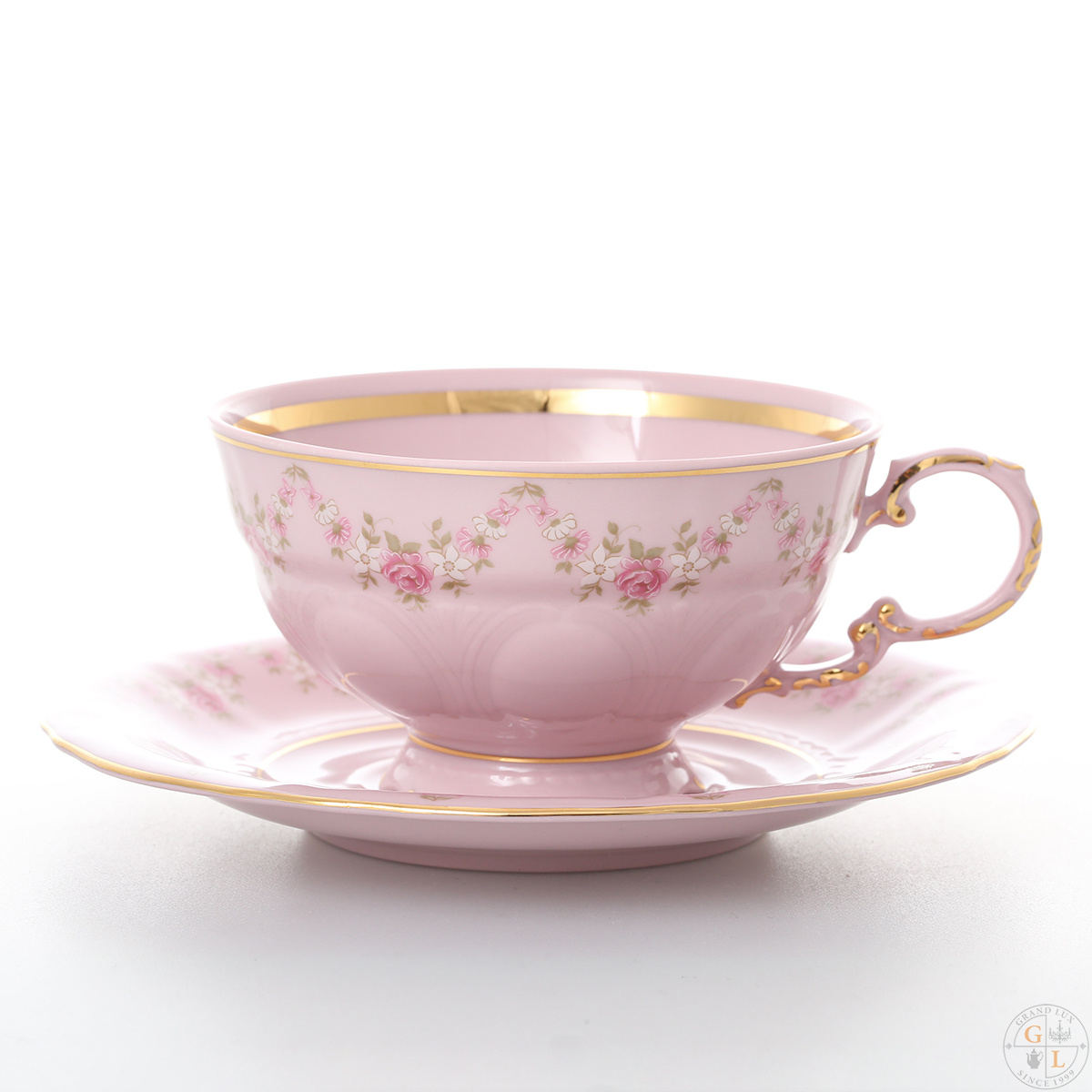 Набор чайных пар Leander соната мелкие цветы розовый фарфор 200 мл(6 пар)