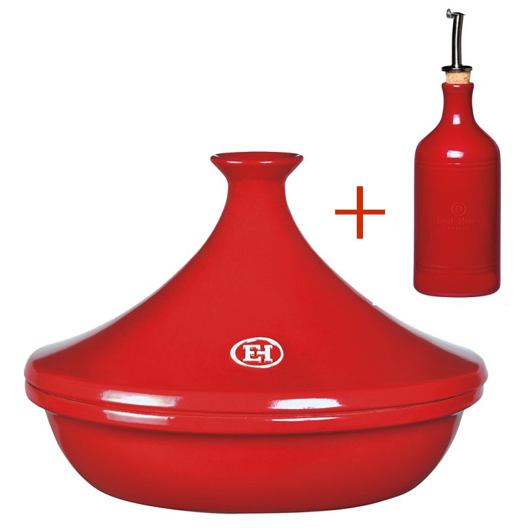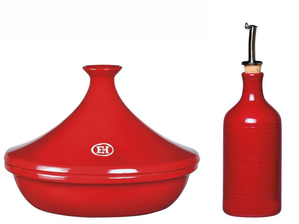 Промонабор:emile Henry тажин 32 см(гранат)+ бутылка для масла и уксуса