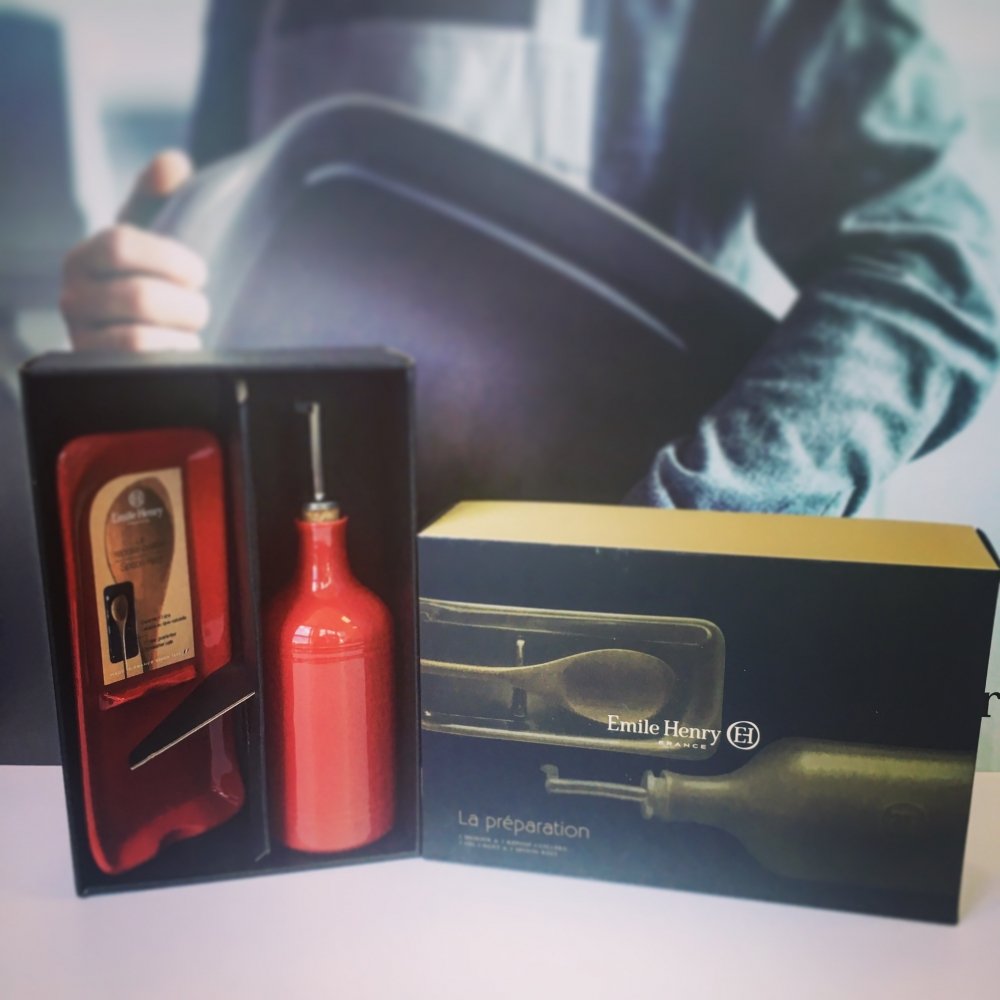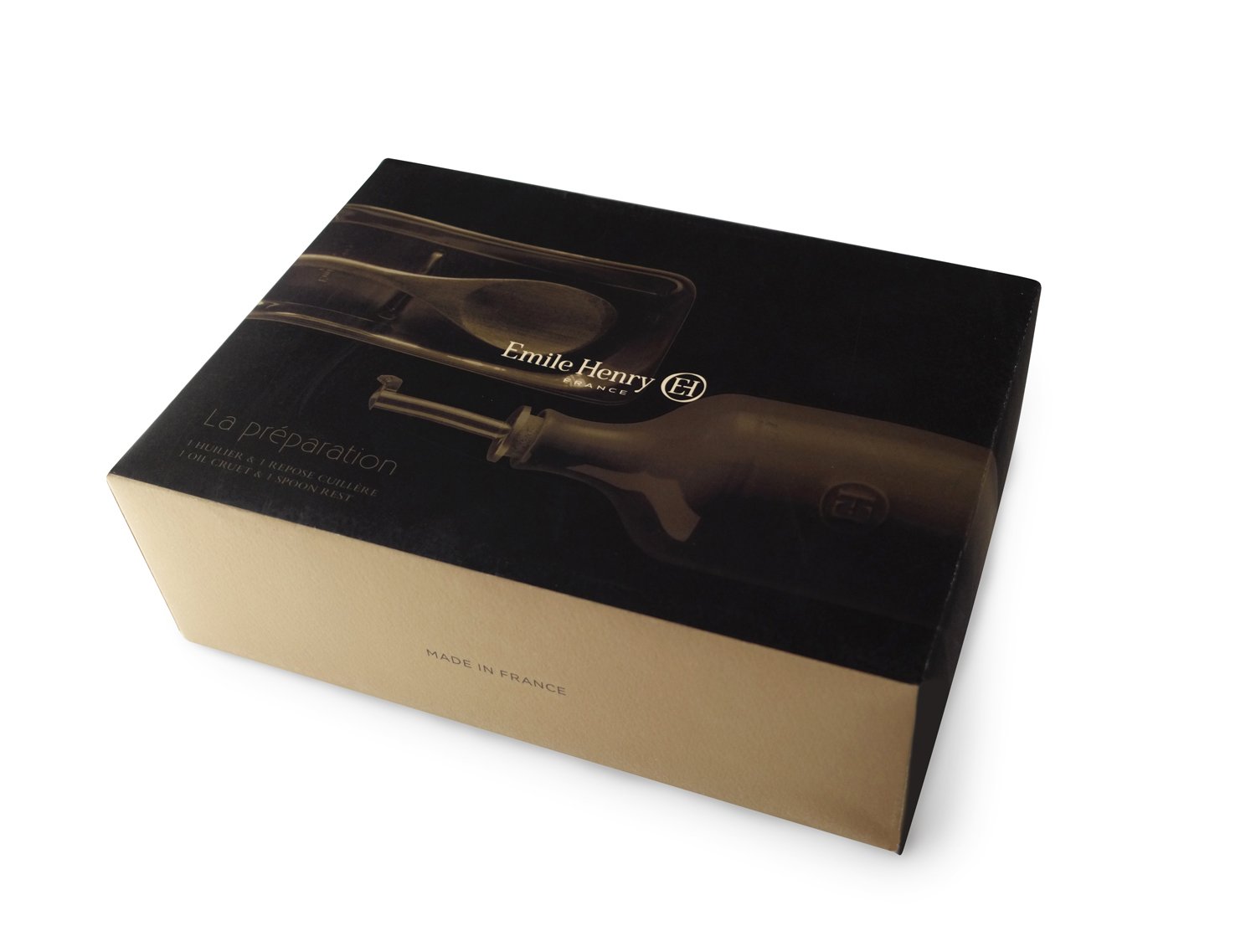 Подарочный набор Emile Henry: бутылка для масла и подставка под ложку (гра