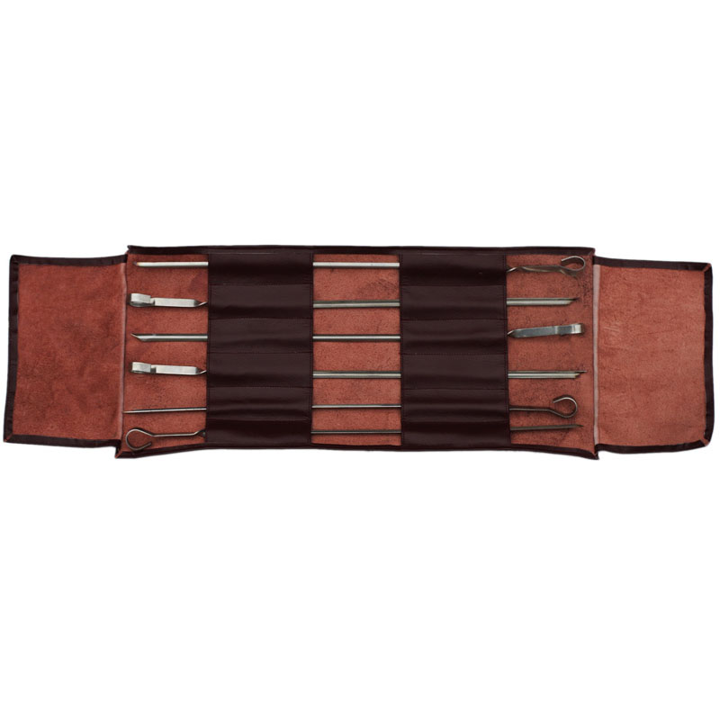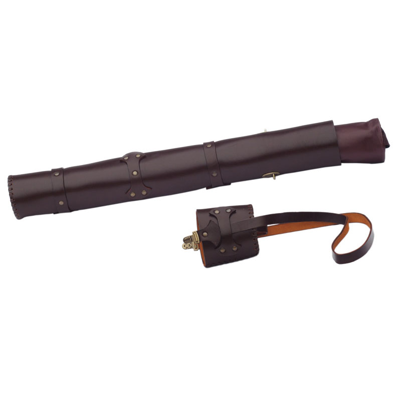 350кк6 колчан с шампурами «тубус». 1. Колчан «Тубус» из натуральной кожи с наплечным ремнем 1шт. 2. Вкладыш в колчан для 6 шампуров 1шт. 3. Шампур из нержавеющей стали, рукоять-кольцо, длина 50см 6шт. 4. Чехол из спанбонда (нетканый мягкий материал) 1шт.