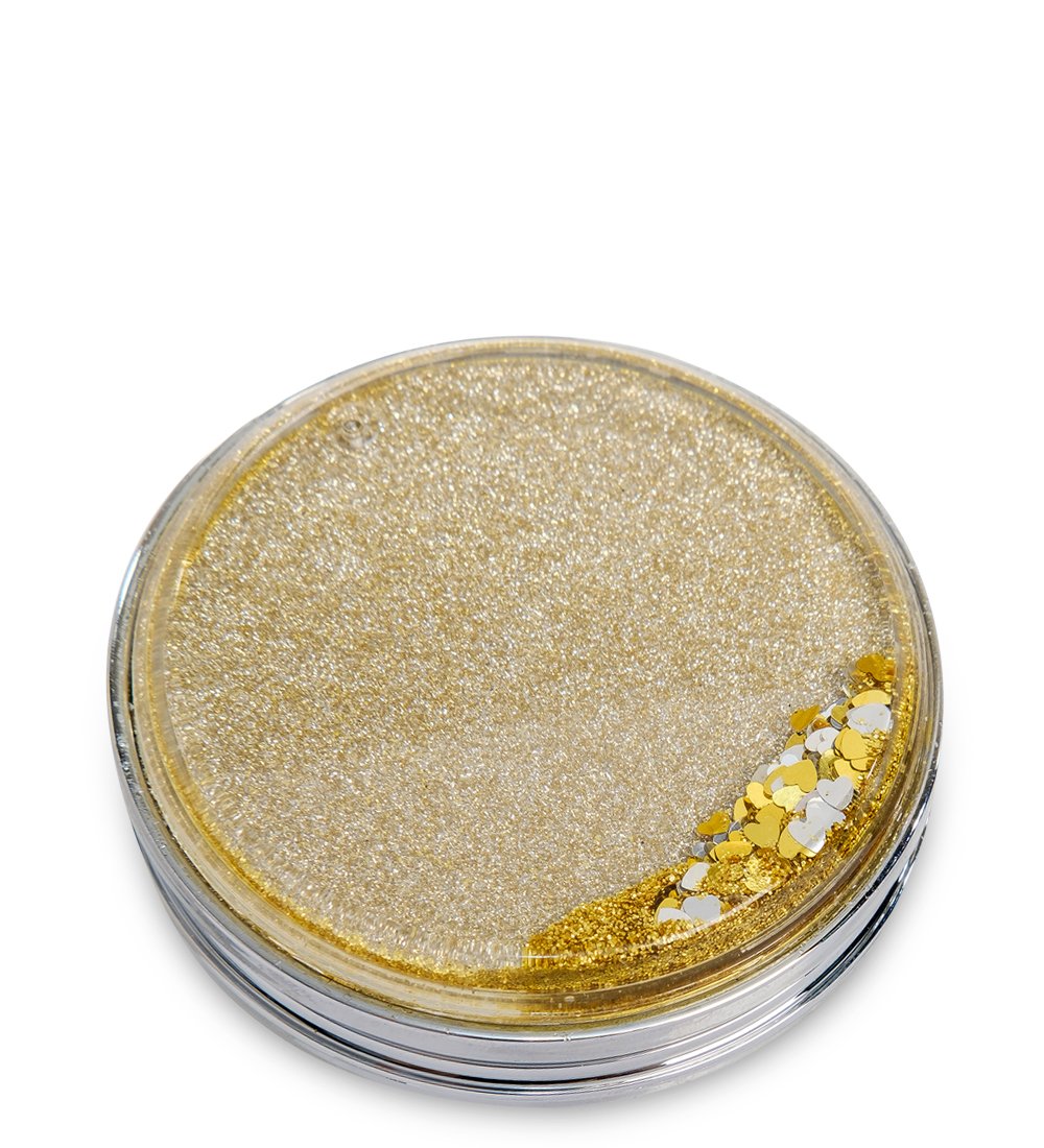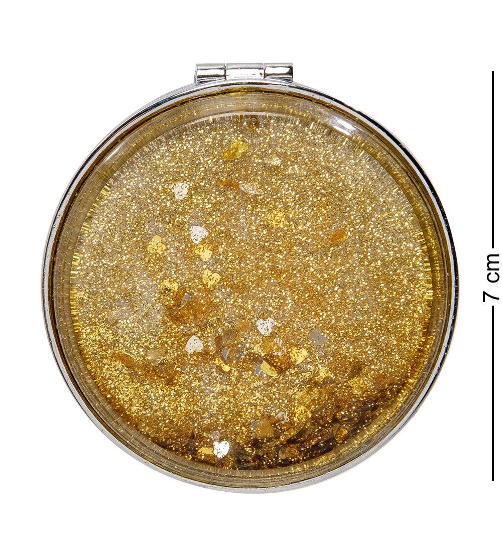 Ww-113 зеркало круглое золотистое с плавающими сердечками блеск