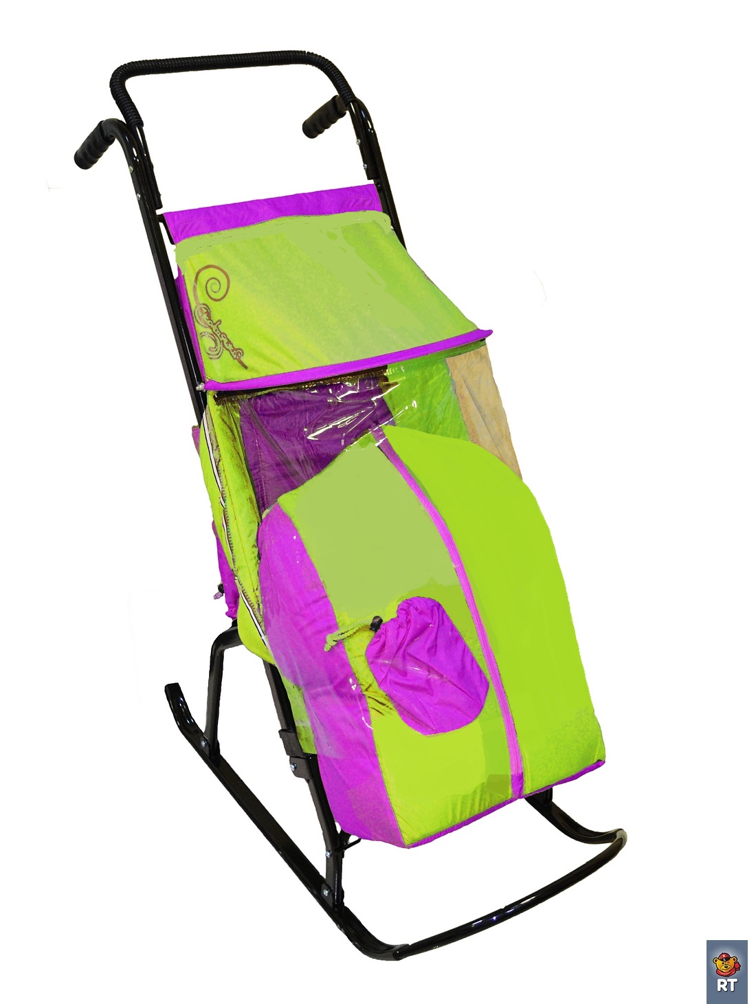 Санки-коляска снегурочка 2-р1 снежинки сиреневый-салатовый