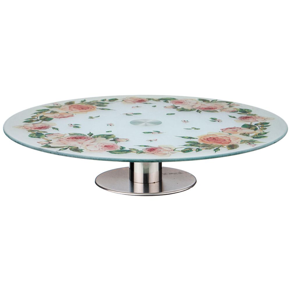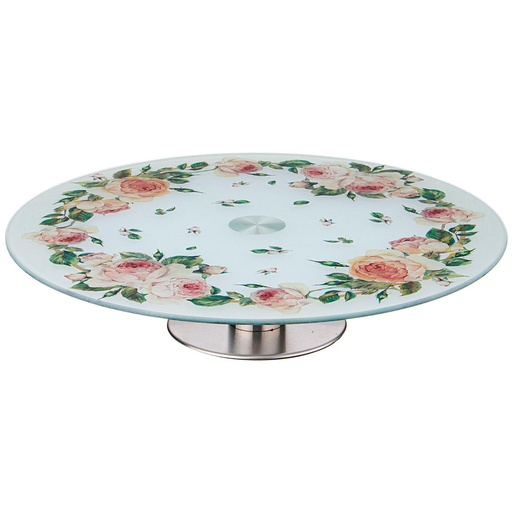 Тортовница вращающаяся винтаж.пионы диаметр=32 см. высота=7 см.