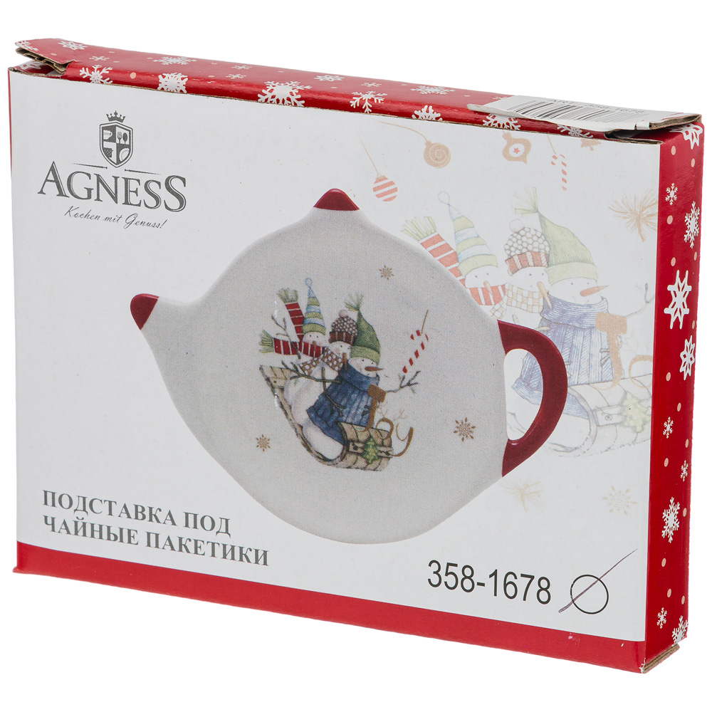 Подставка под чайные пакетики зимняя забава 12*8,5*1,5 см.. ПОДСТАВКА ПОД ЧАЙНЫЕ ПАКЕТИКИ ЗИМНЯЯ ЗАБАВА 12*8,5*1,5 СМ. Секрет красивого оформления стола – оригинальная и стильная посуда! Посуда из серии «ЗИМНЯЯ ЗАБАВА» от торговой марки AGNESS станет приятным акцентом на любой кухне. Благодаря неповторимому дизайну каждое изделие будет настоящим украшением праздничного стола. Так же данная посуда прекрасно подойдет в качестве подарка и никого не оставит равнодушным. Сделайте себе подарок, побалуйте себя и своих близких! Посуда AGNESS изготавливается из доломитовой керамики - это толстостенная, но при этом необычайно легкая керамика, в состав которой добавлен природный минерал доломит. Посуда, сделанная из доломита, поражает своей невесомостью. Поскольку доломит – материал природный, он совершенно безопасен: не выделяет никаких веществ, не имеет запаха. Продукты в такой посуде максимально сохраняют полезные свойства, вкус и аромат. Правила ухода за доломитовой посудой не сложные: • НЕ использовать абразивные чистящие средства; • НЕ использовать в СВЧ печах и ПММ; • мыть с применением нейтральных моющих средств; • избегать резкого перепада температур. Итог: • Высококачественный товар в Элегантной упаковке • Классическая форма с Оригинальным и Ярким дизайном • Практичная и Экологичная посуда для всех Высота, см: 1.5 Длина, см: 12 Материал: Керамика Микроволновая печь: Нет Посудомоечная машина: Нет Серия: Зимняя Забава Ширина, см: 8.5 Бренд: Agness Страна: КИТАЙ Маркировка: Нет Вес: 0.090 кг Длина коробки: 12 см Ширина коробки: 9 см Высота коробки: 2 см