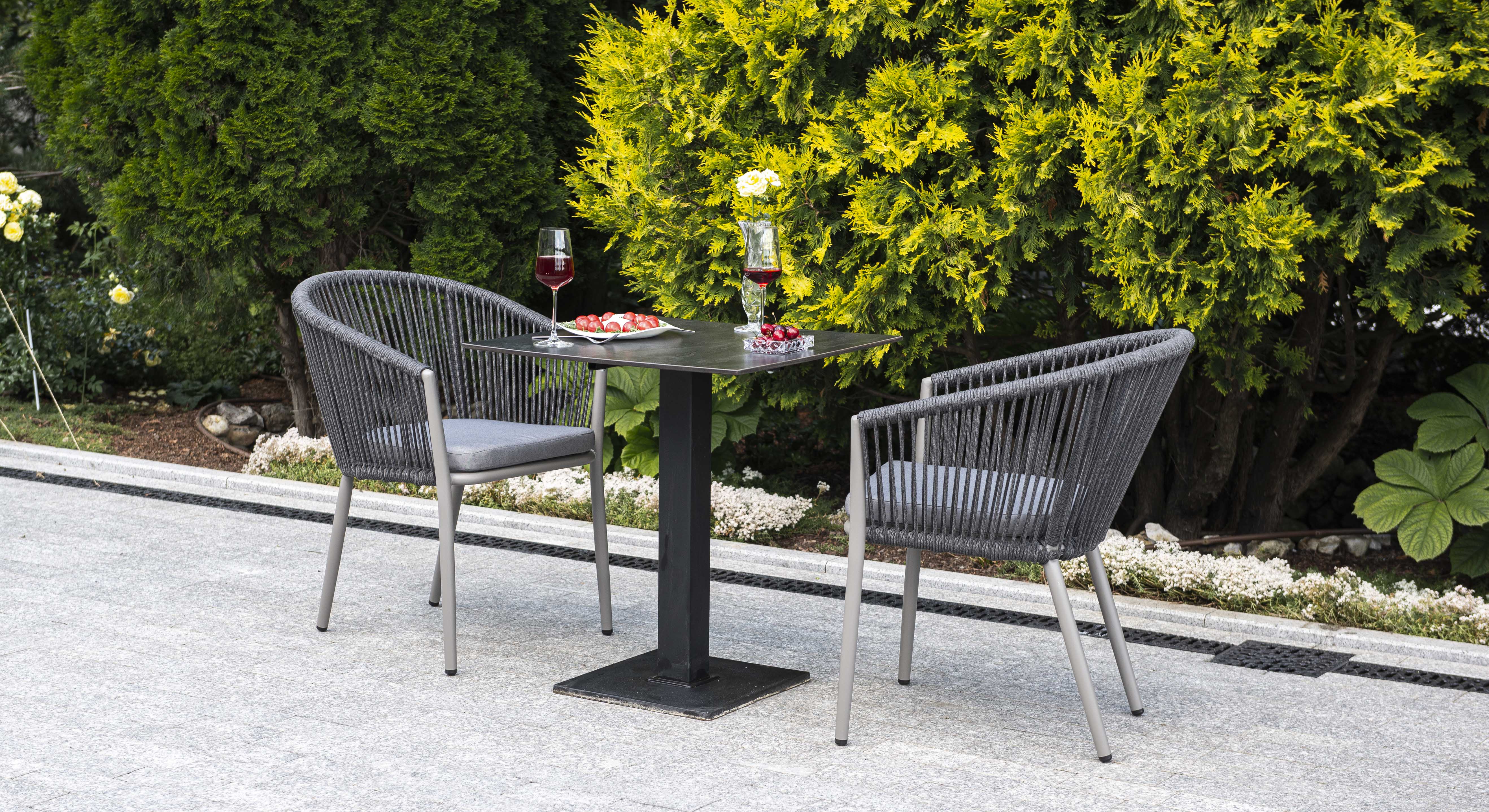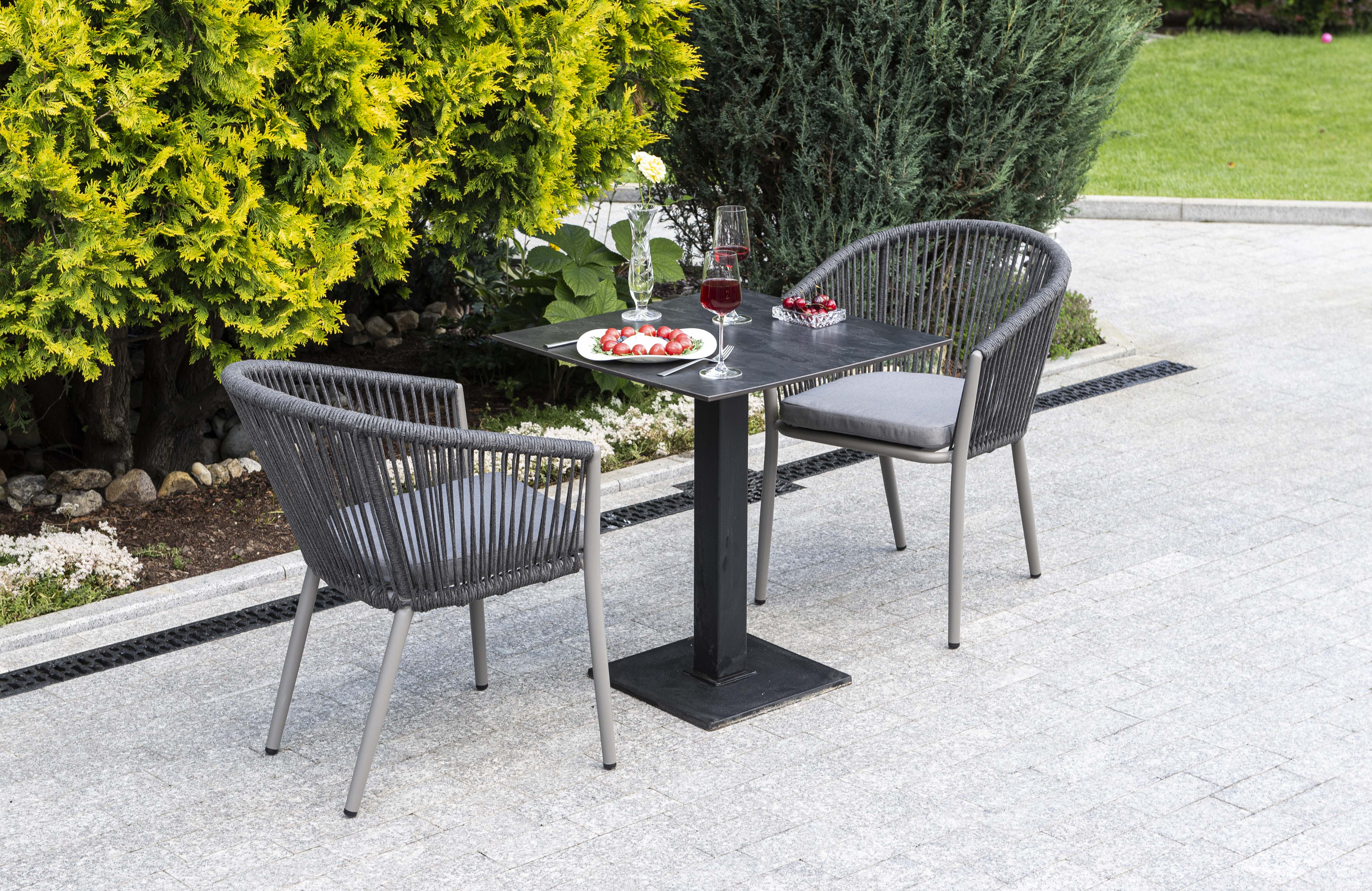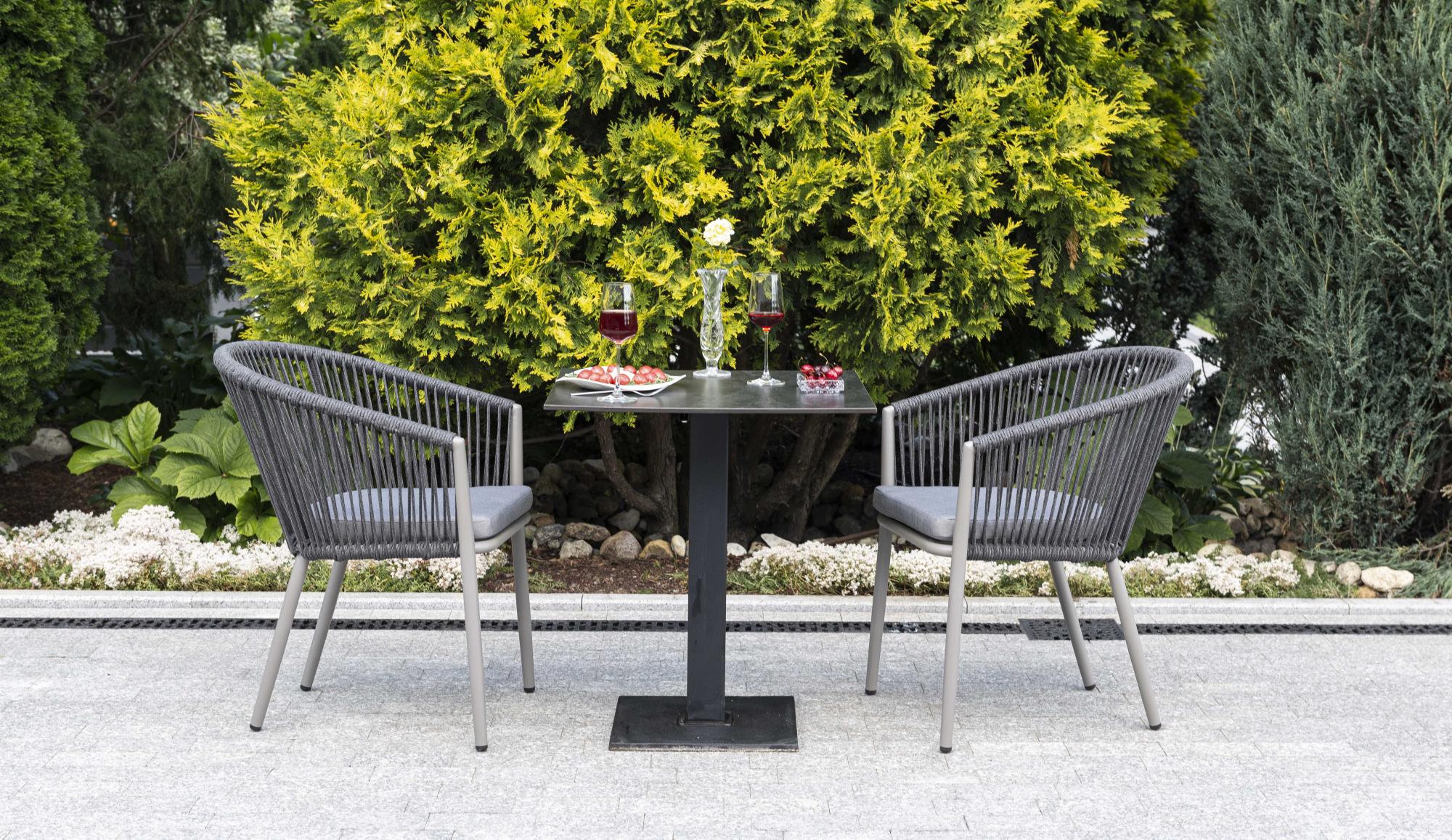 Марсель, обеденная группа. Обеденная группа состит из стола со столешницей HPL молочного цвета, диаметром 65см #40;подстолье чугун #41; и 2ух кресел из алюминиевого каркаса, оплетенного вручную эластичными синтетическими лентами из высокопрочных полиэфирных волокон, в комплекте с подушкой, цвет темно-серый. Срок изготовления стола от 3 дней. Возможно изготовление стола любого размера под заказ. Производство может быть перегружено, по этому перед оплатой, просим уточнять наличие материалов и сроки изготовления. Материал каркаса Искусственный ротанг, алюминий Материал подушки полиэстер 100% плотностью 230гр/м2 с влагоотталкивающей пропиткой Вес 11. 8кг