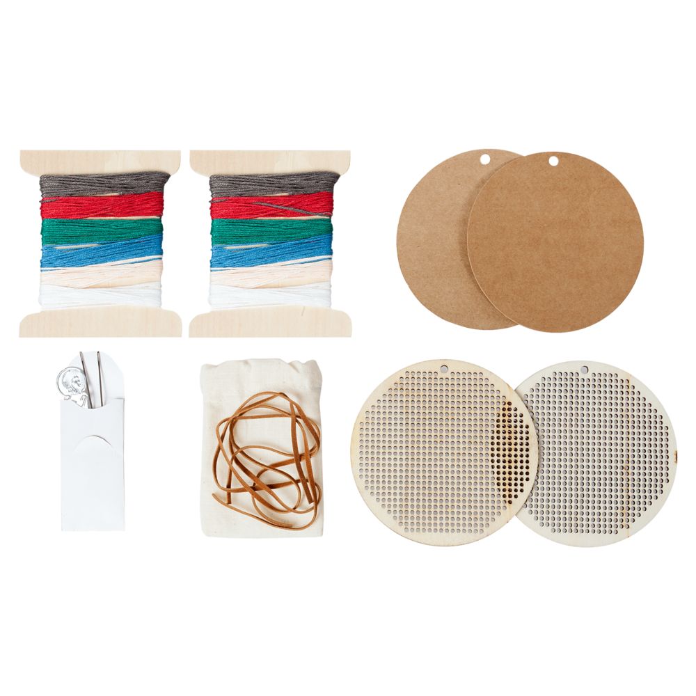 Набор для вышивания «елочная игрушка». Размеры упаковка 29х11х3 см, диаметр канвы и открытки 10 см Материал канва - дерево; коробка и открытки - картон Вес (1 шт.) 104 г Транспортная упаковка 46,0x35,0x33,0 см Вес 5,00 кг Объем упаковки 0,053 м? Количество в упаковке 48 шт. Виды нанесения SH-Шелкография (1 цвет) Творческие хобби сейчас в тренде. А новогодние праздники — прекрасный повод весело и с пользой провести каникулы в кругу семьи и друзей. Набор «Елочная игрушка» подойдет даже тем, кто никогда в жизни не пробовал вышивать: в нем есть все необходимое плюс подробная красочная инструкция. Кстати, при помощи шнурка и картонной открытки, которые тоже входят в набор, можно сделать памятные новогодние игрушки и украсить ими елку. В комплекте: Деревянная канва, 2 шт. Картонная открытка для пожеланий, 2 шт. Холщовый мешочек с двумя веревочками и металлическими иголками (иголкидополнительно упакованы в картонный конверт). Деревянная основа с нитками, 2 шт; нитки шести разных цветов. Инструкция с вариантами готовых рисунков.