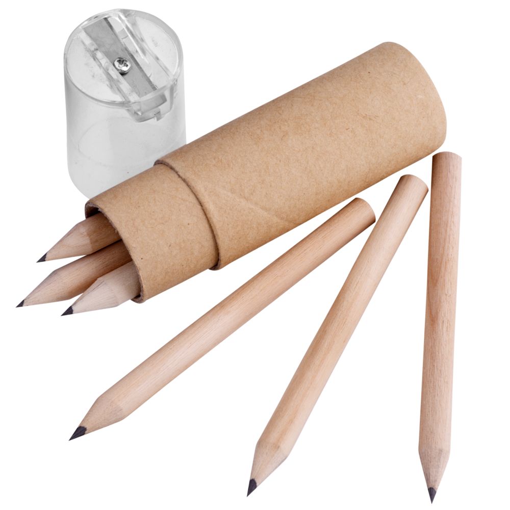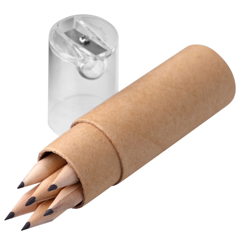 Набор карандашей office с точилкой. Размеры диаметр пенала 2,6 см, высота 10 см; диаметр карандаша 0,7 см, длина 8,5 см Материал картон; пластик; дерево Вес (1 шт.) 26,00 г Транспортная упаковка 29,0x30,0x55,0 см Вес 13,00 кг Объем упаковки 0,048 м? Количество в упаковке 500 шт. Виды нанесения A1-Тампопечать (1 цвет) LC1-Лазерная гравировка В комплекте: 6 заточенных простых карандашей HB, пенал с точилкой.