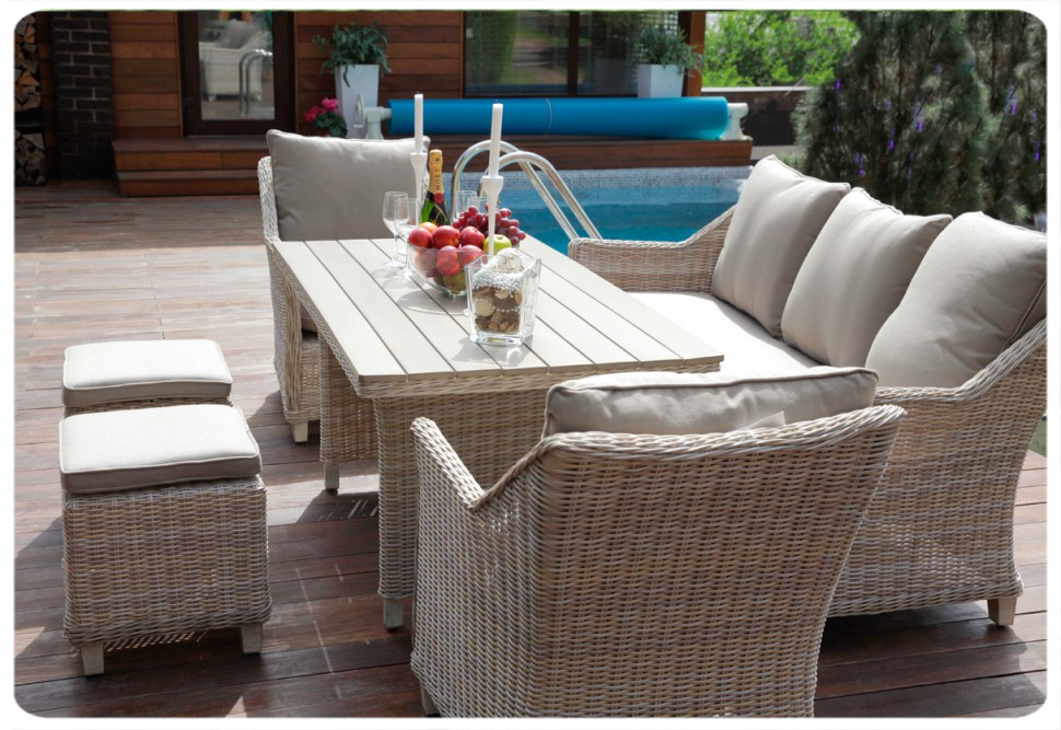 Комплект мебели из ротанга фиджи (стол, диван, два кресла, два пуфика)