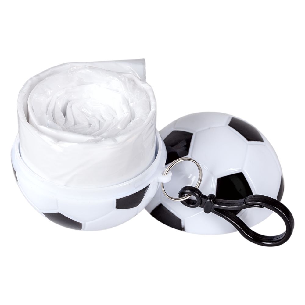 Дождевик в футляре «мяч». Размеры футляр: диаметр 6,3 см; плащ: 120х90 см Материал футляр - пластик; плащ - полиэтилен, плотность 120 мкм, толщина 0,12 мм Вес (1 шт.) 60,00 г Транспортная упаковка 52,0x33,0x35,0 см Вес 12,00 кг Объем упаковки 0,060 м? Количество в упаковке 200 шт. Виды нанесения UV-УФ-печать Компактный дождевик в пластиковом футляре по достоинству оценят посетители спортивных матчей. Даже если дождь не прольется, его наверняка оставят в сумке «на всякий случай». Дождевик с футляром в форме футбольного мяча может подарить своим болельщикам футбольный клуб, а может распространить на стадионе компания-спонсор или спортивное СМИ. Как небольшой и недорогой подарок его могут использовать и организаторы любительских, корпоративных или детских матчей и чемпионатов. Поставляется в индивидуальном пакетике с липким краем.