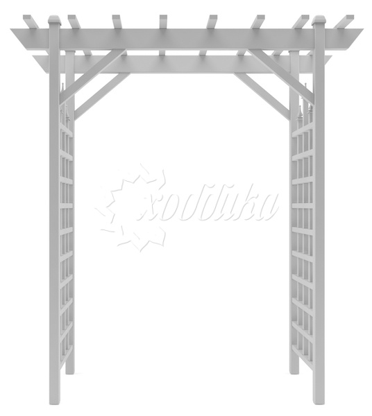 Пергола арка «зимний сад» стандарт. Подробные характеристики Материалы: Опоры и каркас: Стальной профиль различного сечения. Защита от коррозии. Покрыты порошковой полимерной краской. Возможность выбора цвета по каталогу RAL. Стандартный цвет (по умолчанию) - серый. Фурнитура: Оцинкованная. Возможность выбора цвета фурнитуры по каталогу RAL. Стандартный цвет (по умолчанию) - серебристый. Возможность использования потайной/скрытой фурнитуры. Технические характеристики: Высота: 2569 мм Ширина: 880 мм Длина: 1440 мм Вес: от 120 кг