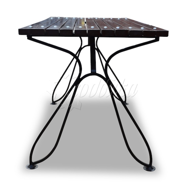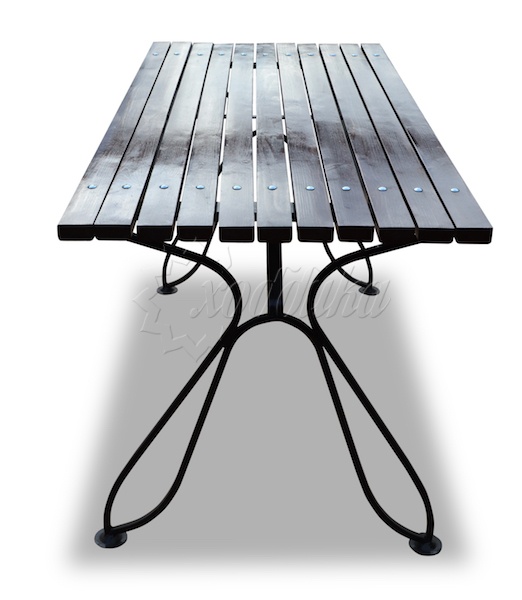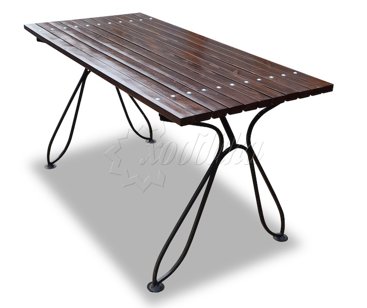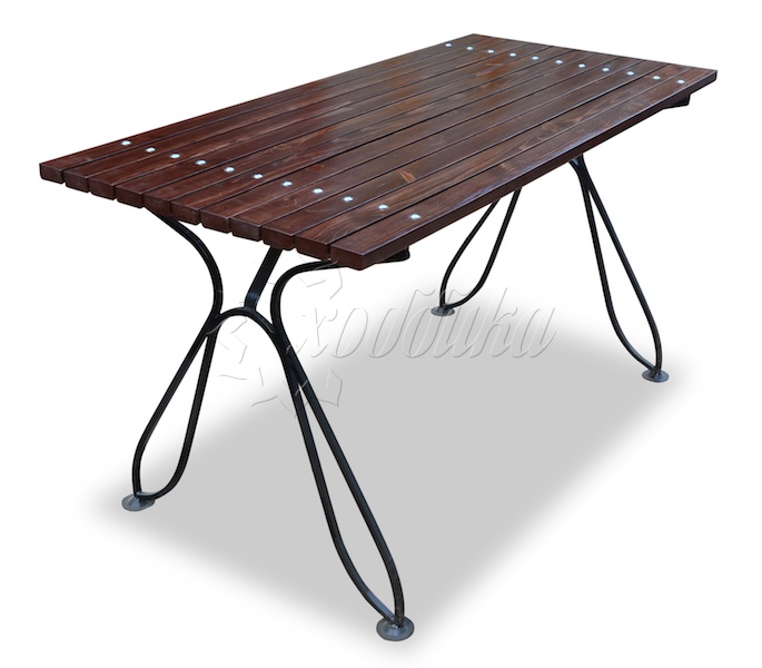 Стол кованый «капелька» 1,5 м. Подробные характеристики Стол имеет дополнительную защиту от раскачивания. Материалы: Опоры: Cталь. Покрыты порошковой полимерной краской. Возможность выбора цвета по каталогу RAL. Стандартный цвет (по умолчанию) - черный. Столешница: Брус из хвойных пород древесины - сосна/ель (варианты исполнения: лиственница, композитные материалы) различного сечения. Огнебиозащитные пропитки + тонировочный состав с антисептиком + два слоя яхтного лака с промежуточным шлифованием. Возможность выбора цвета из палитры. Фурнитура: Оцинкованная. Возможность выбора цвета фурнитуры по каталогу RAL. Стандартный цвет (по умолчанию) - серебристый. Возможность использования потайной/скрытой фурнитуры. Технические характеристики: Высота: 770 мм Ширина: 690 мм Длина: 1200 - 3000 мм Ширина столешницы: 690 мм Длина столешницы: 1200 - 3000 мм Вес версии 1.2 м: 26,6 кг Вес версии 1.5 м: 29,2 кг Вес версии 1.8 м: 31,8 кг Вес версии 2.0 м (2 опоры): 33,6 кг Вес версии 2.5 м (3 опоры): 46,5 кг Вес версии 3.0 м (3 опоры): 50,9 кг О модели Стол для сада «Капелька» порадует вас декоративными кованными элементами опор. Этот стол не займёт много места на вашей даче, однако он вместительный, лёгкий и прочный. Закажите к нему стальные скамейки - сделайте свой отдых более душевным и приятным. Варианты цвета на выбор: , палисандр, махагон, тик,