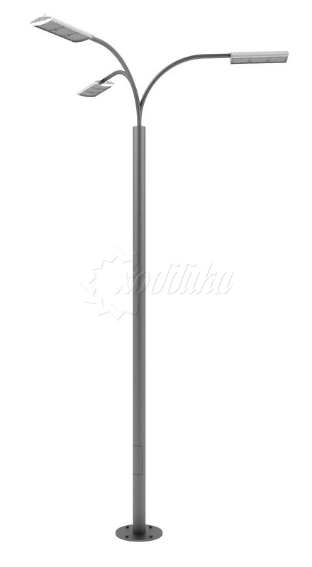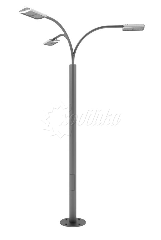 Стальной фонарный столб «техно3-э» со светильником 3,2 м.(80 вт). Подробные характеристики Материалы: Тумба, стойка и кронштейн: Сталь. Покрыты порошковой полимерной краской. Возможность выбора цвета по каталогу RAL. Соединительные и декоративные элементы: Сталь. Светильник: светодиодный светильник Элегант 80 Вт - 3 шт. Технические характеристики: Источник света: Патрон E-27 под лампу накаливания до 150 Вт, либо энергосберегающую лампу. Возможна комплектация ПРА под Nat70, Nat100, ДРЛ80, ДРЛ125 и источником света. Возможно комплектование светодиодными модулями. Высота: от 3,2 до 6,4 м Вес: от 46 кг Монтаж столба на объекте производится путем бетонирования стойки или закладной детали, с последующим креплением столба болтовым соединением. Фонарный столб имеет ревизионное окошко для обслуживания электрической цепи. Закладной фундамент заказывается отдельно и в цену не входит. О модели Используется в качестве функционального и декоративного освещения улиц, парков, проспектов, скверов, дворов и других общественных мест. Подходит как для дачи и сада, так и для мест муниципального назначения. Монтаж столба на объекте производится путем бетонирования стойки или закладной детали, с последующим креплением столба болтовым соединением.